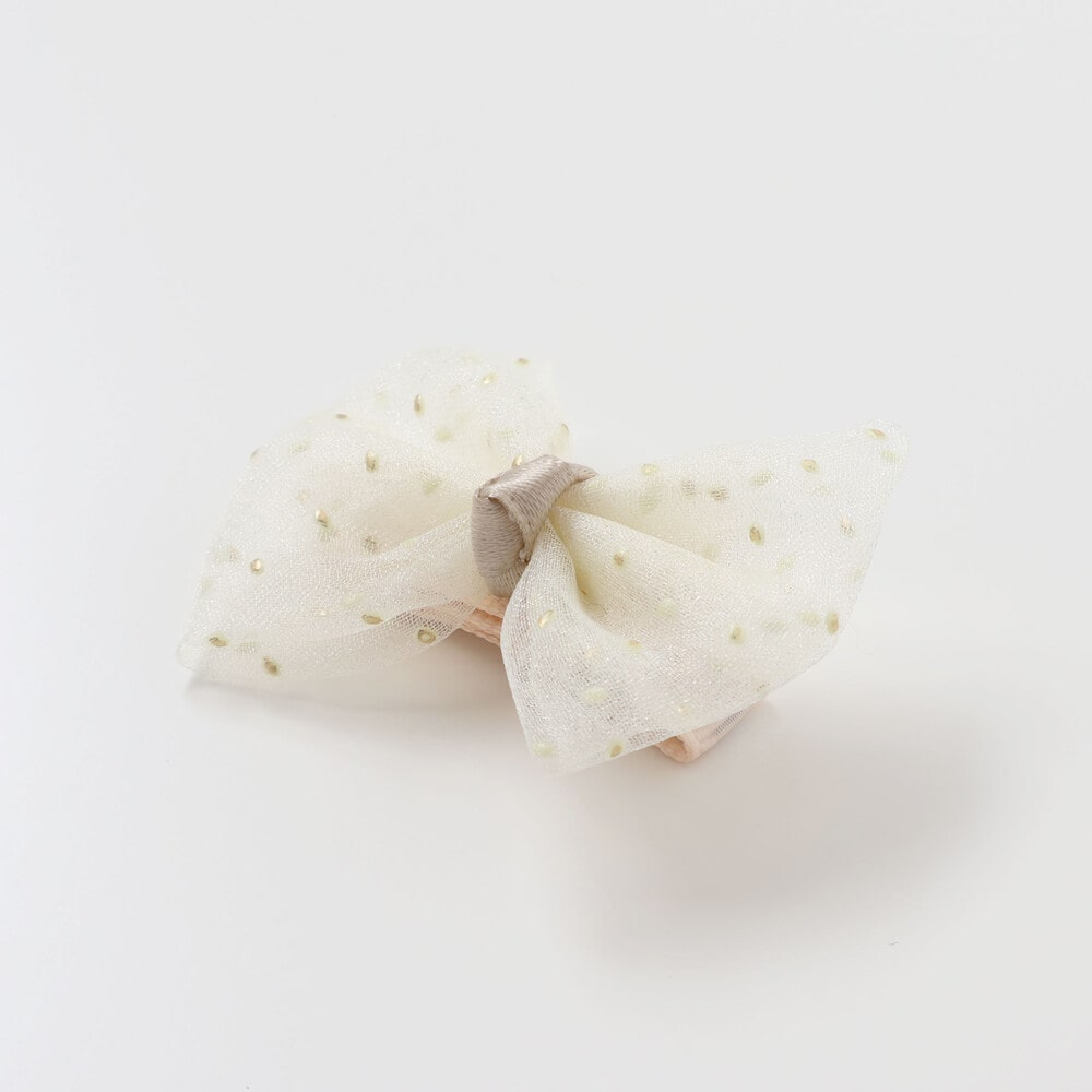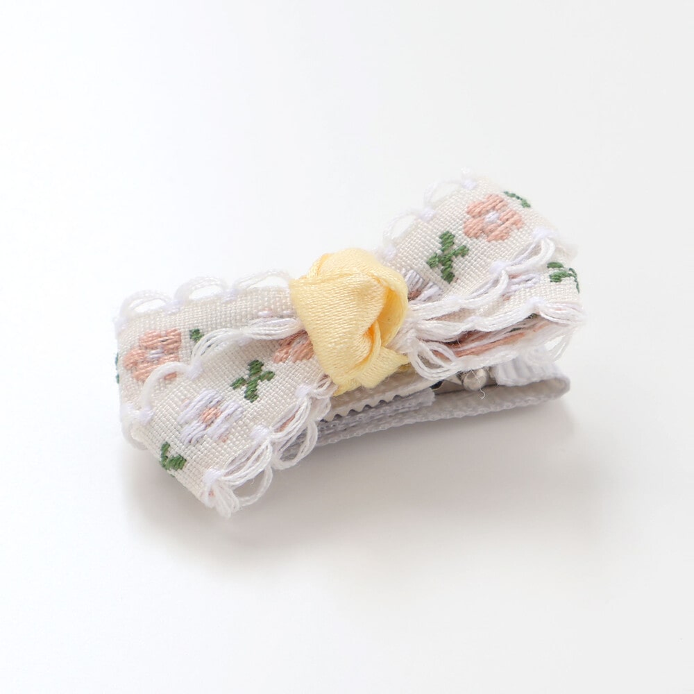 グログランリボンをクリップ部分に使用して肌にあたっても痛くないようにしました。