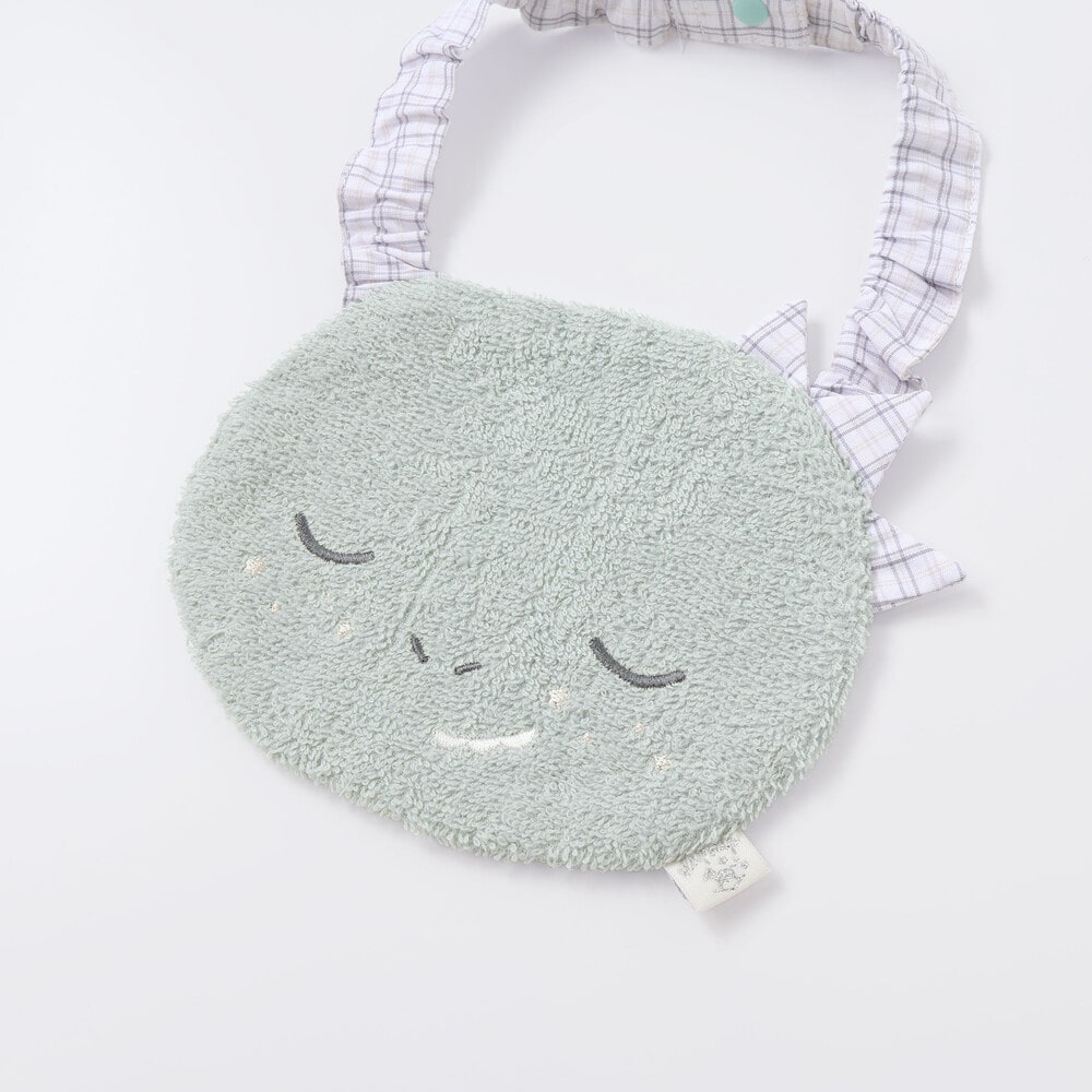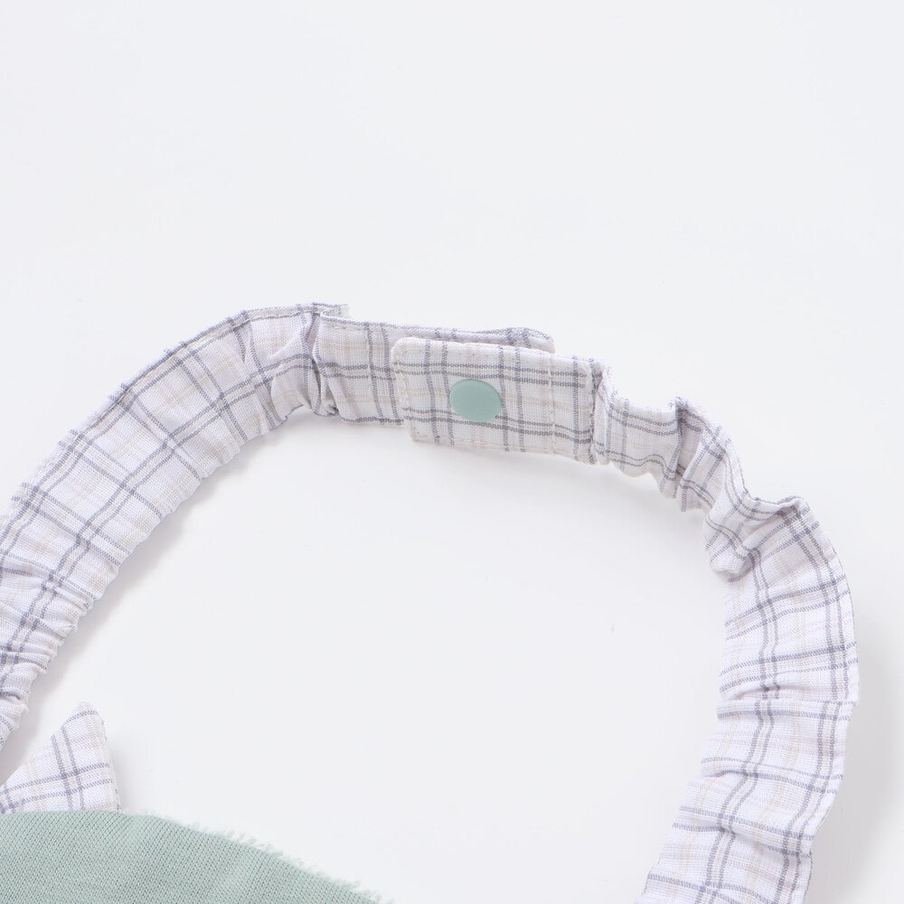 耳の内側や恐竜のヒレ、首ひも部分にはさりげなくチェックや花柄を取り入れ、可愛らしさと遊び心をプラスしました。