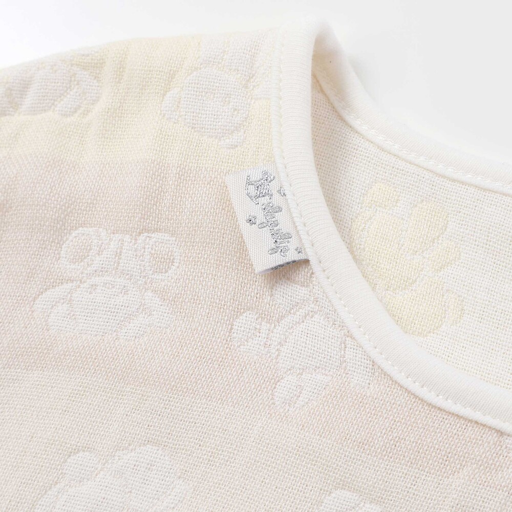 身生地には、ほどよい厚みと柔らかさを兼ね備えた 3連ガーゼジャガード を使用しているから、肌ざわり◎