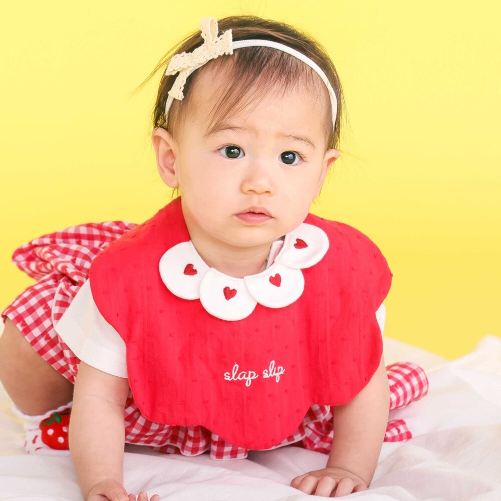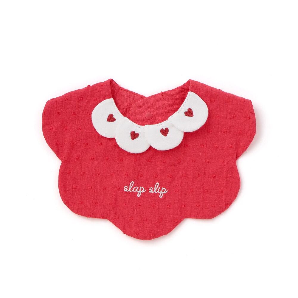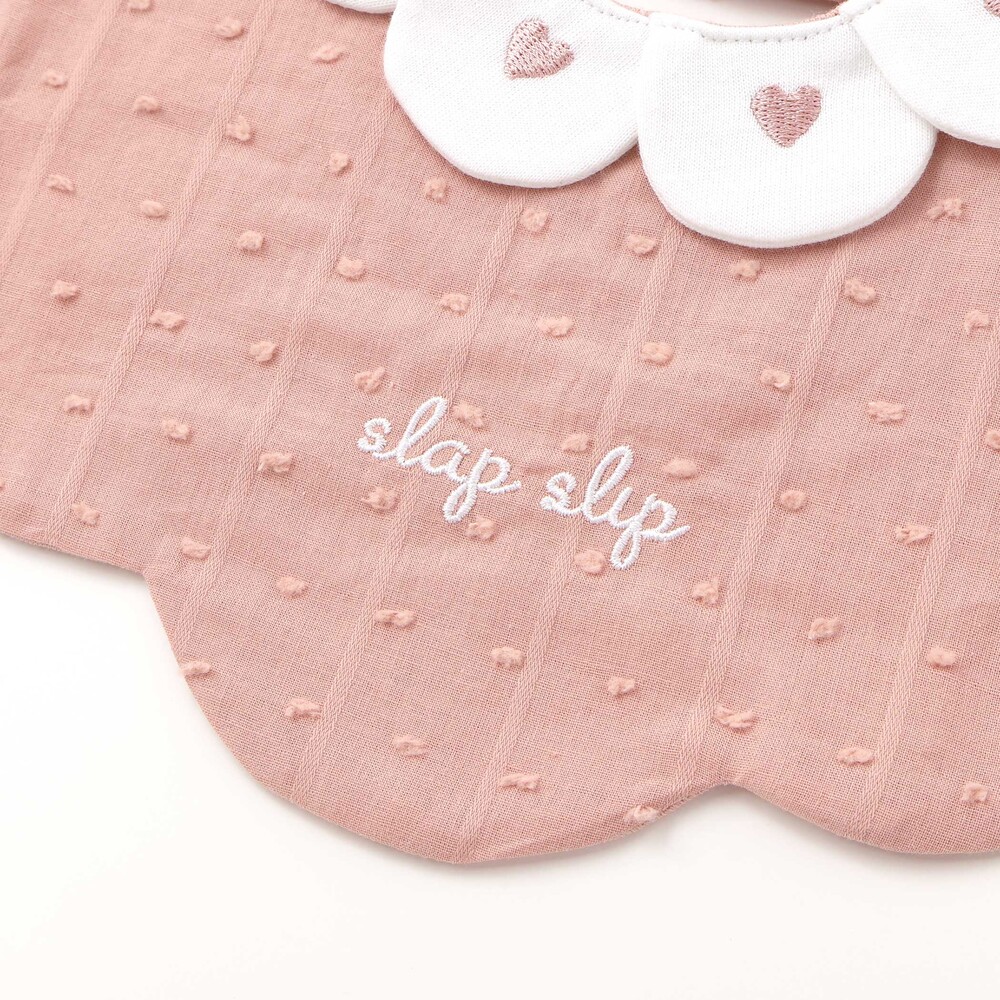 花びらが重なったような襟が目を引く、女の子用スタイ。