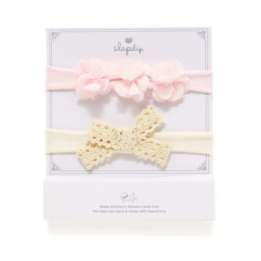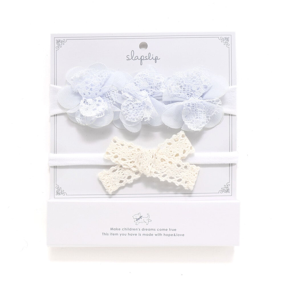 リボンとお花、それぞれ主役になるデザインが楽しめるヘアカチュームの2点セット。