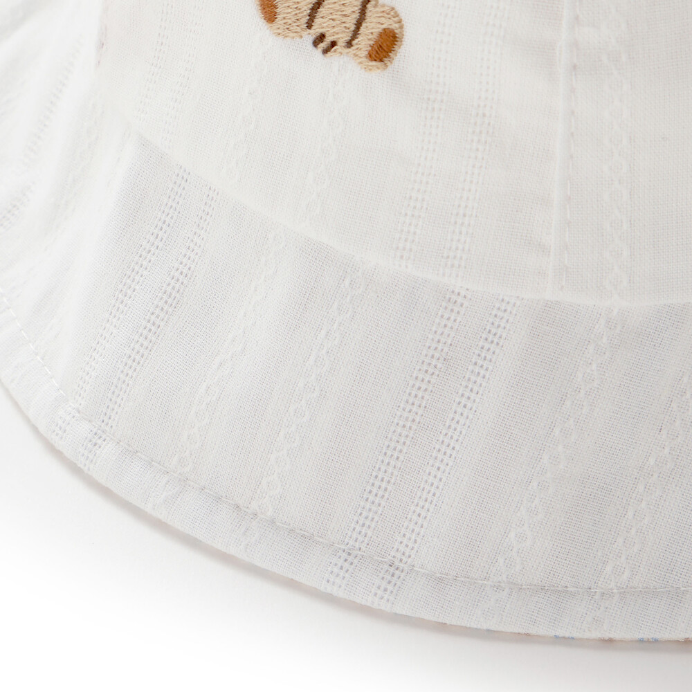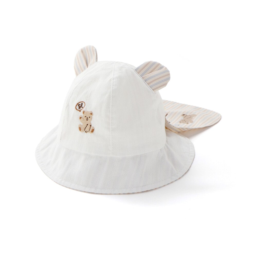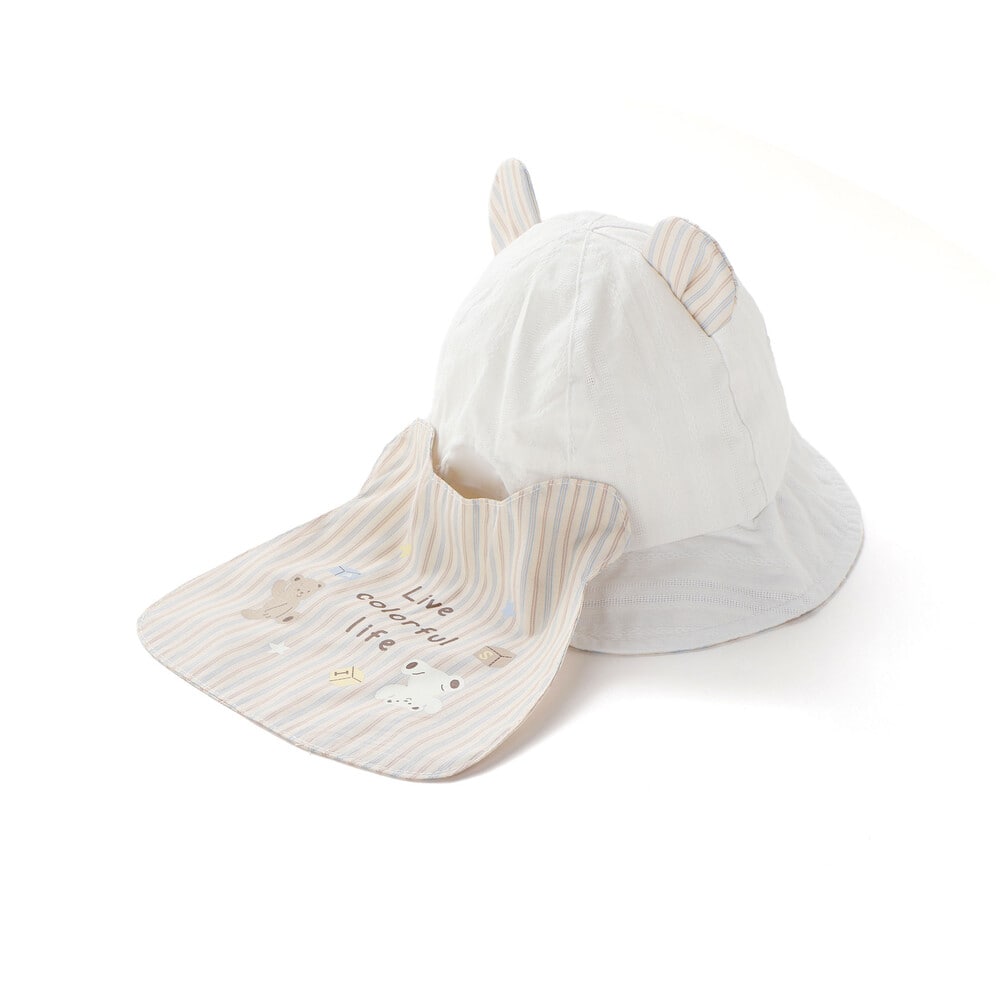 アゴ紐付きなので、動きの多いシーンでもずれにくく、風のある日やお外遊びでも◎。