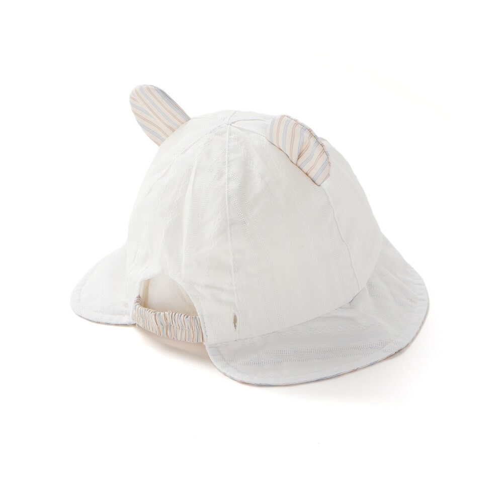 後ろあき部分はゴム仕様で、頭にやさしくフィット。