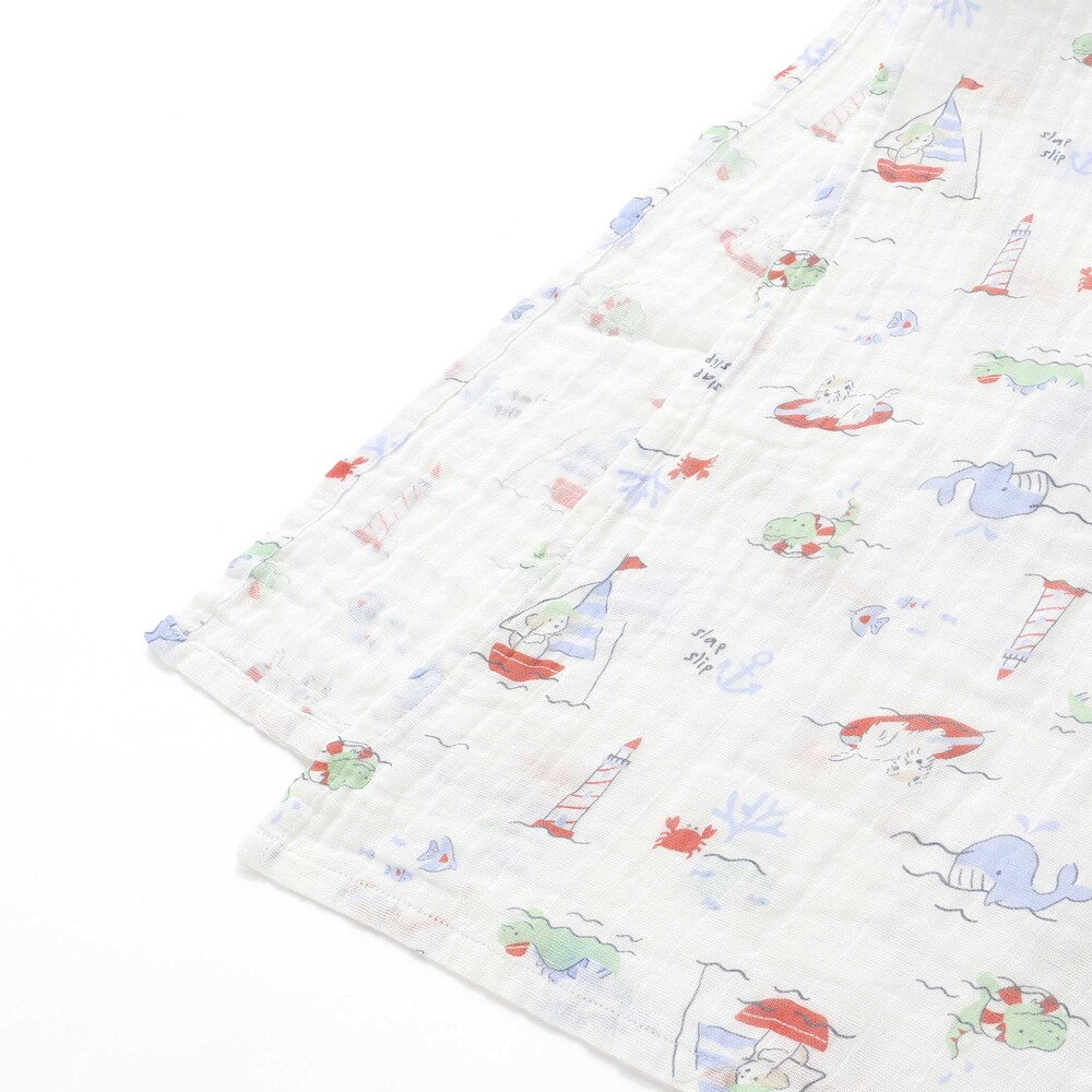 ダブルガーゼを一枚仕立てにした生地を使用しており、軽やかで通気性がよく、季節を問わず使いやすいのも魅力です。