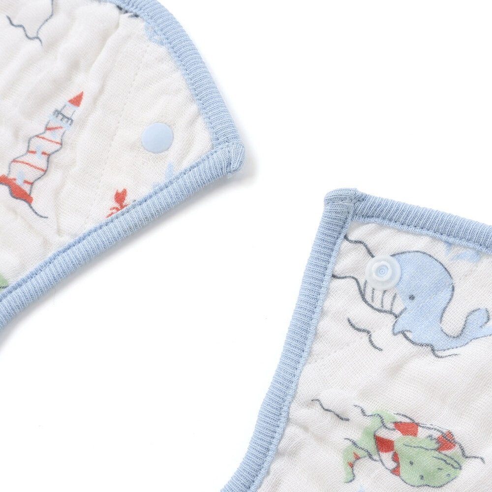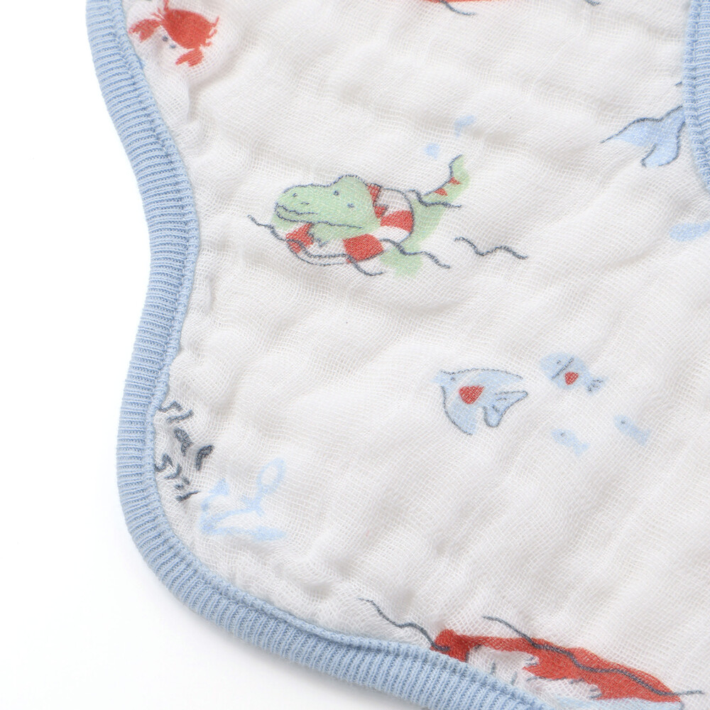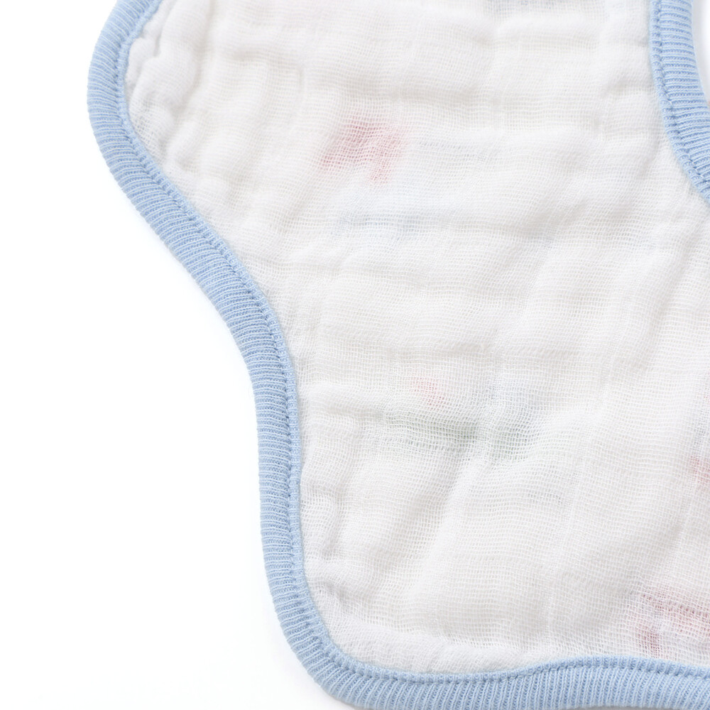 素材にはダブルガーゼを一枚仕立てにした生地を使用し、軽やかで通気性がよく、デリケートな赤ちゃんの肌にもやさしい使い心地です。