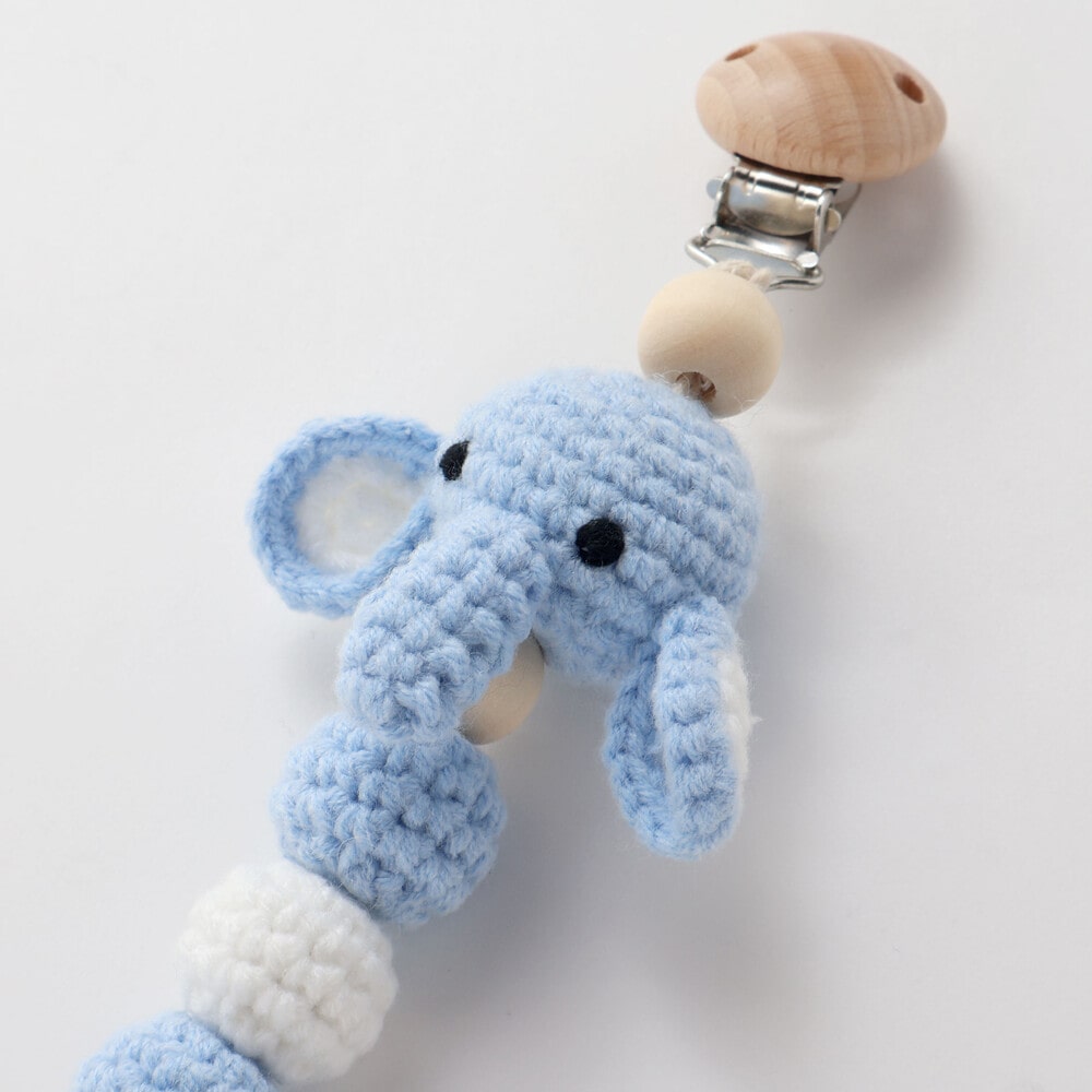 編みあげたウサギとゾウのモチーフが目を引く、可愛らしいマルチクリップ。