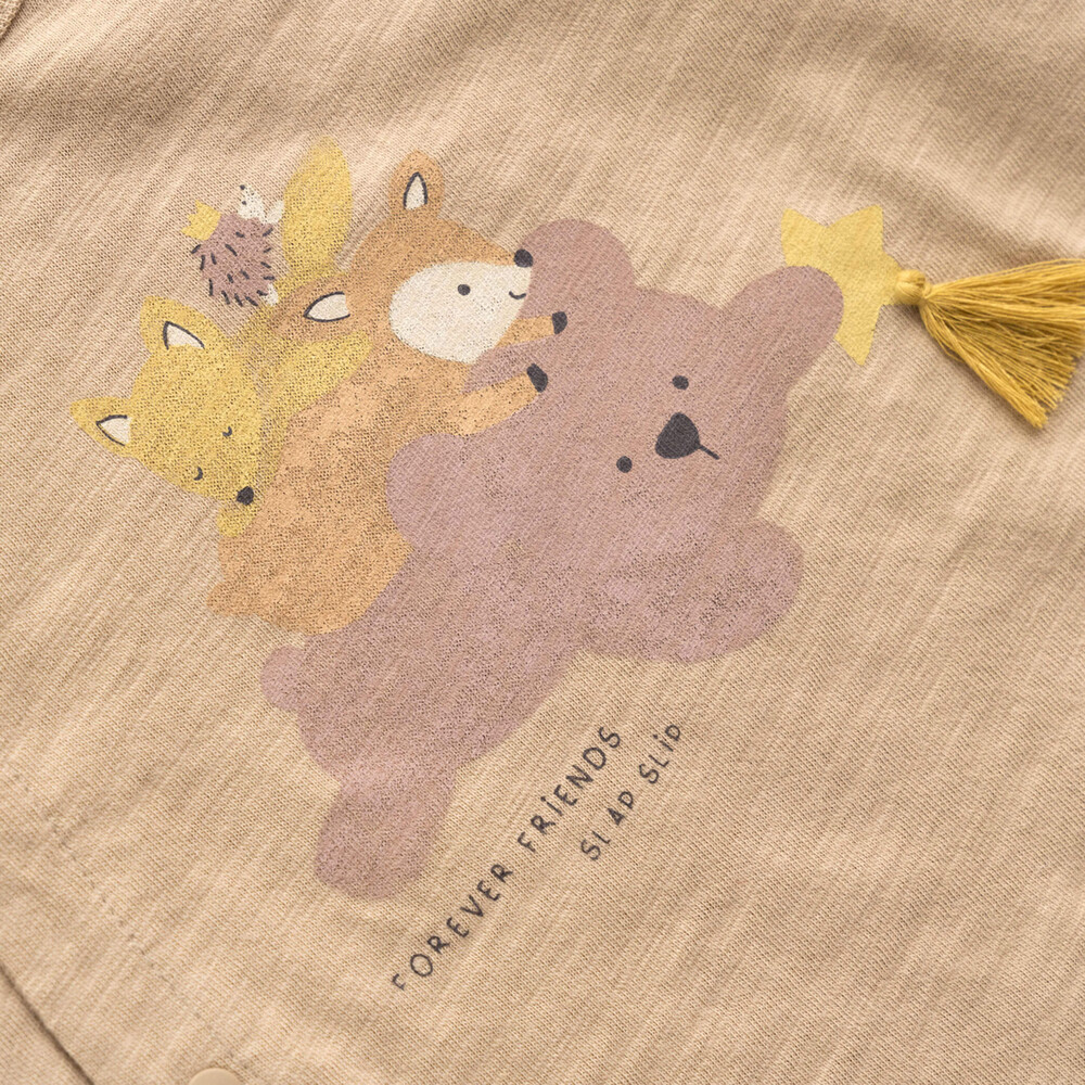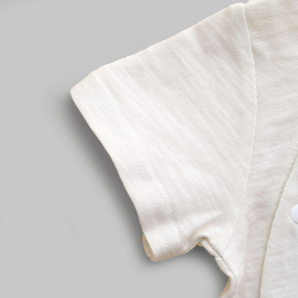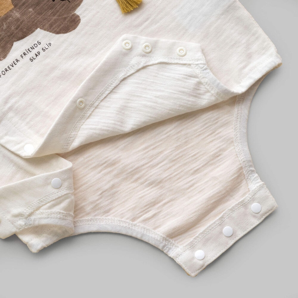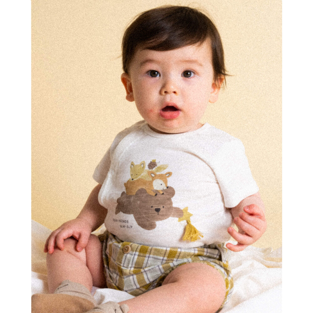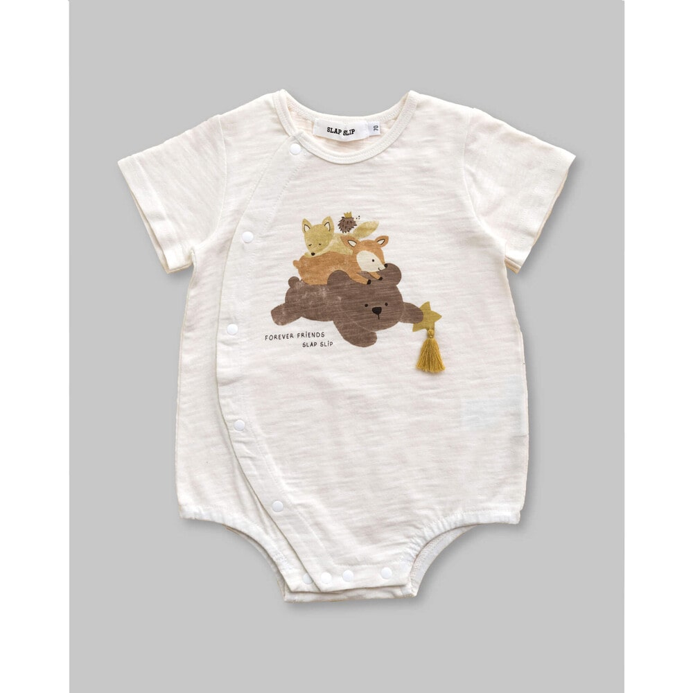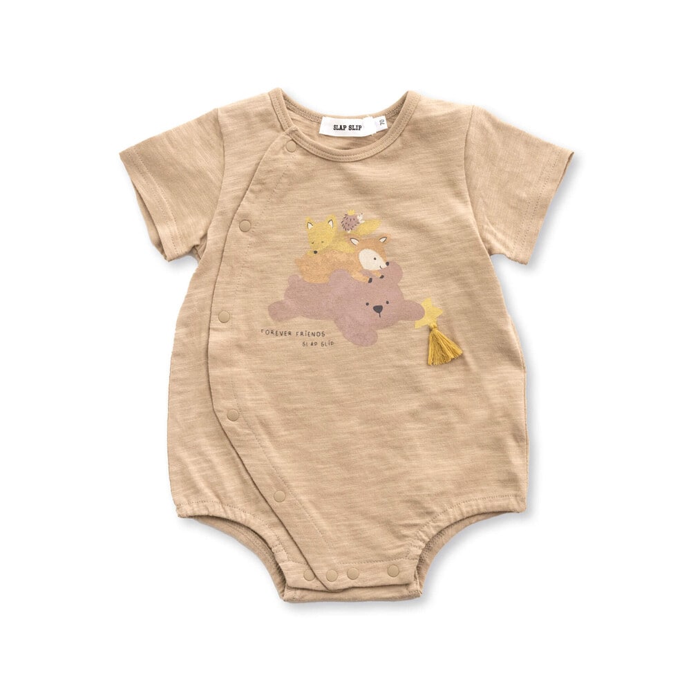 可愛いアニマルの顔に思わずうっとりする男の子用半袖ロンパース。