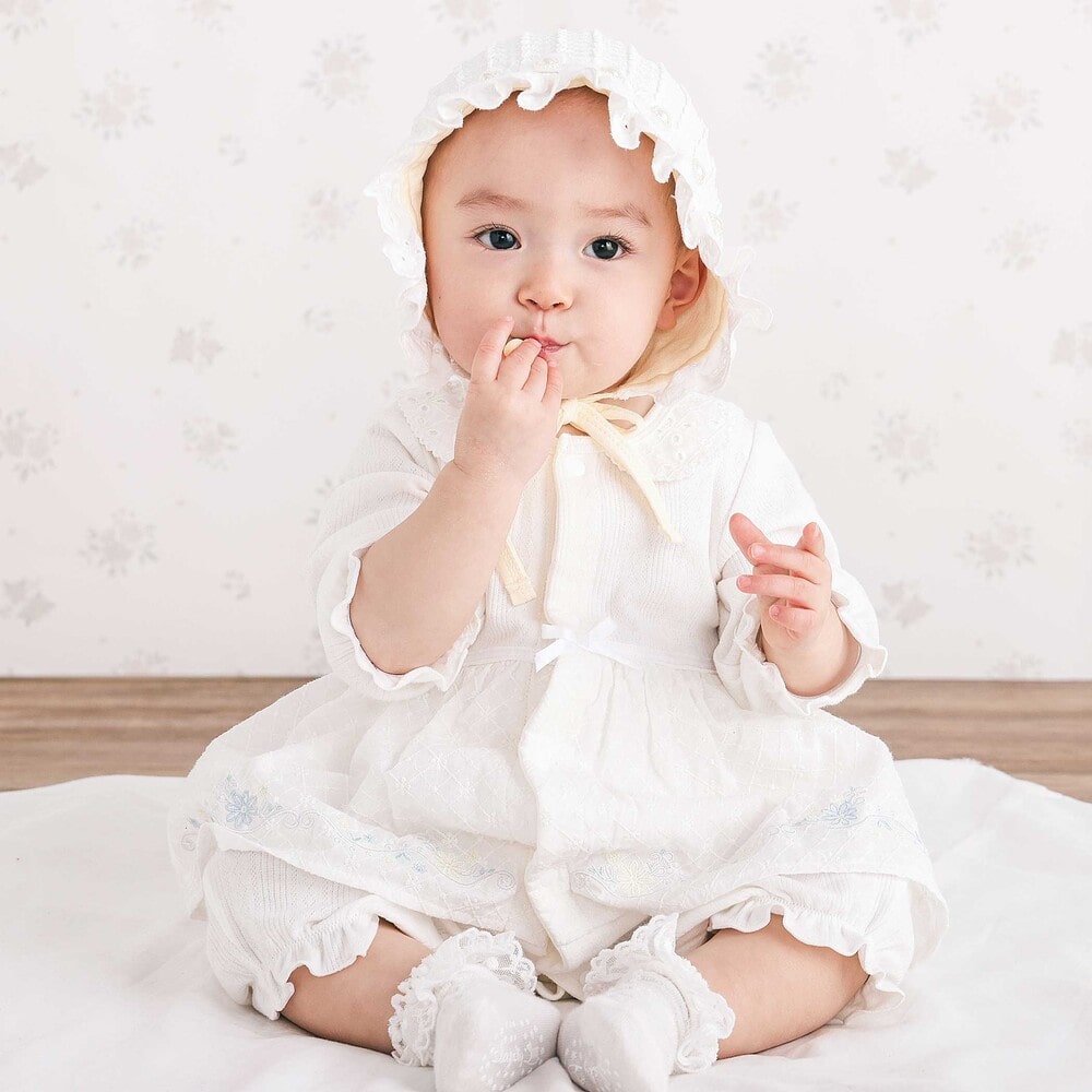 やさしい素材と愛らしいデザインで、赤ちゃんの“はじめてのおしゃれ”を華やかに彩ります。