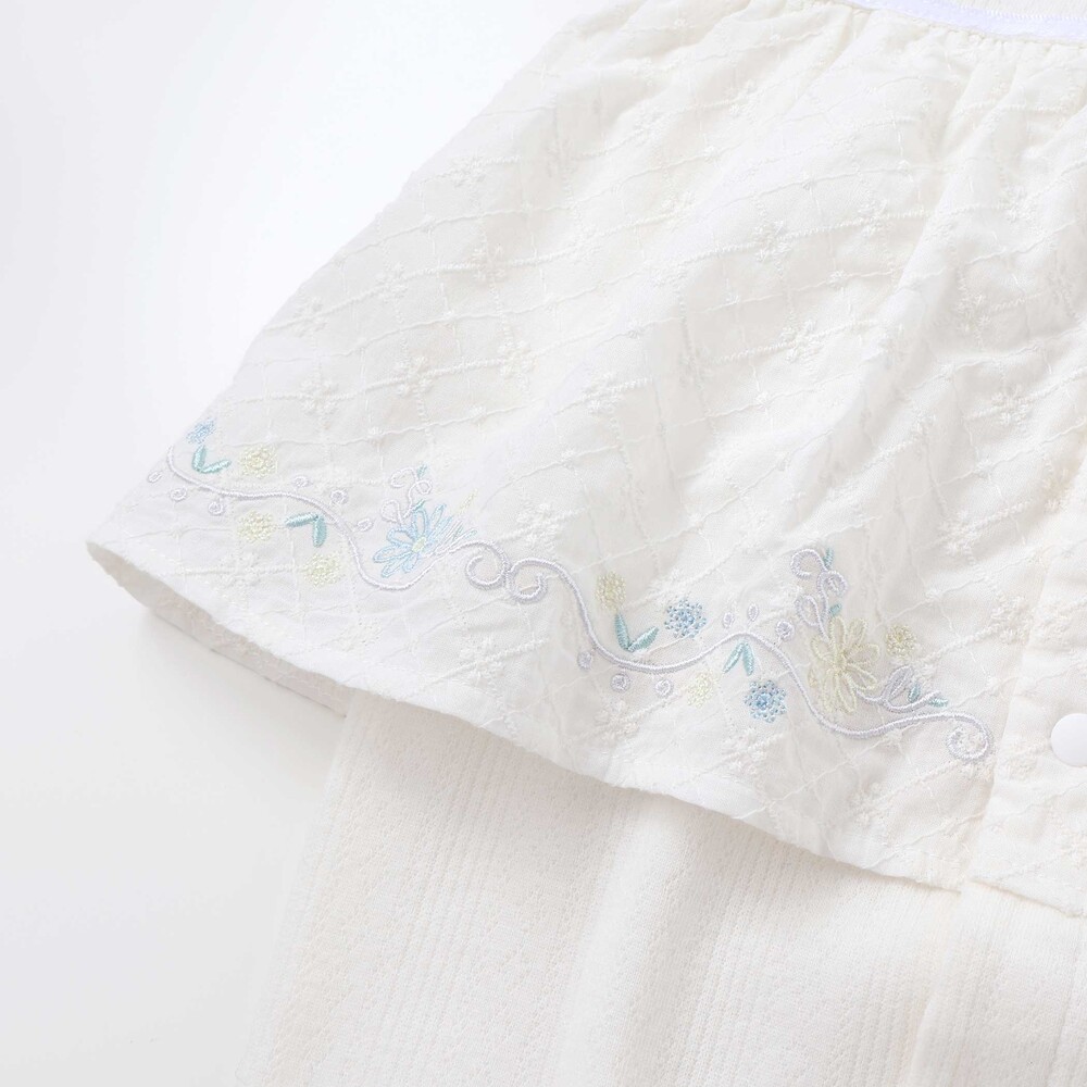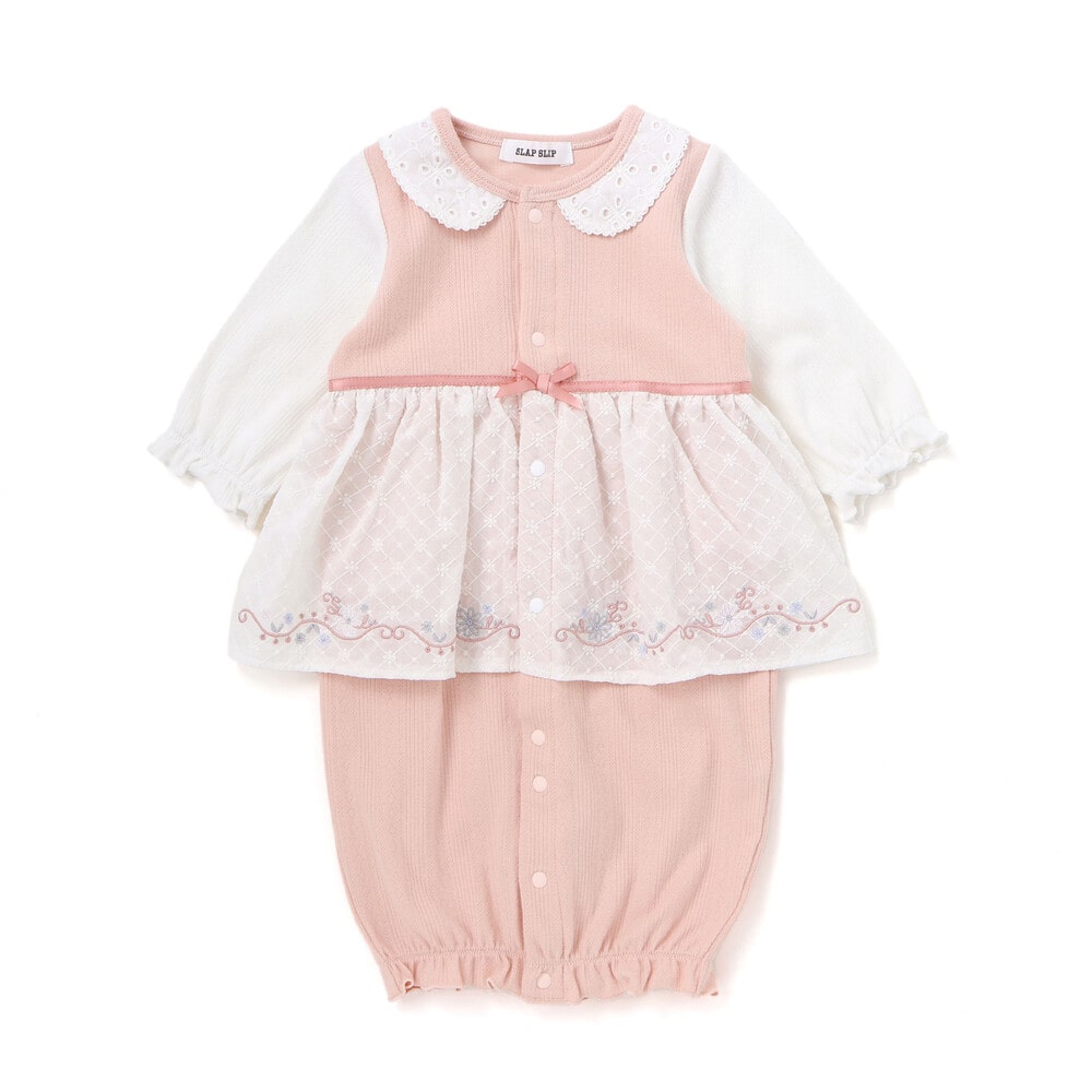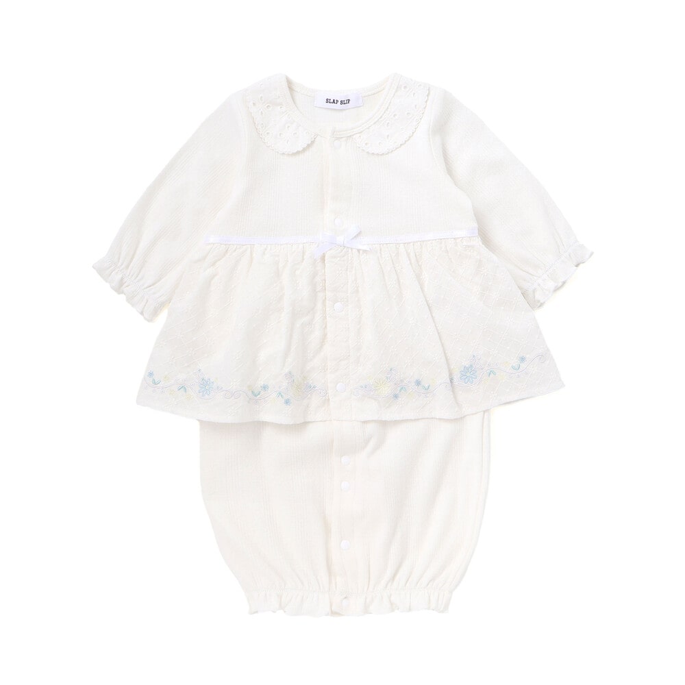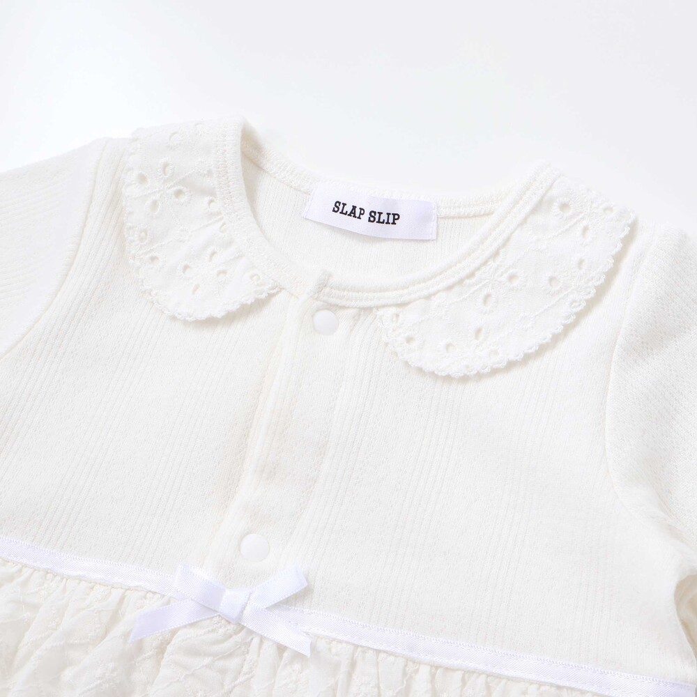 襟には繊細なお花レースを使用して、顔まわりまで可愛らしく演出してくれます。