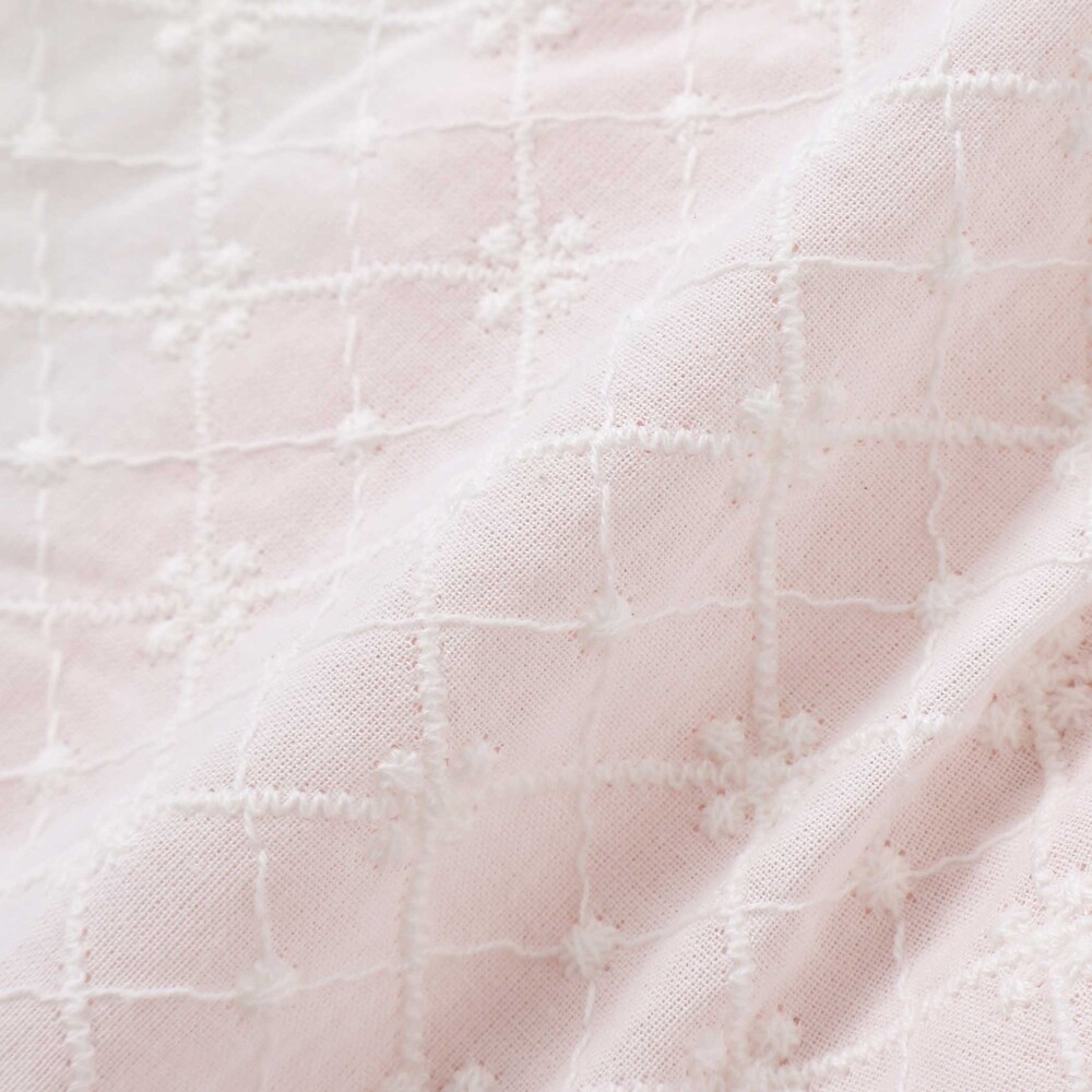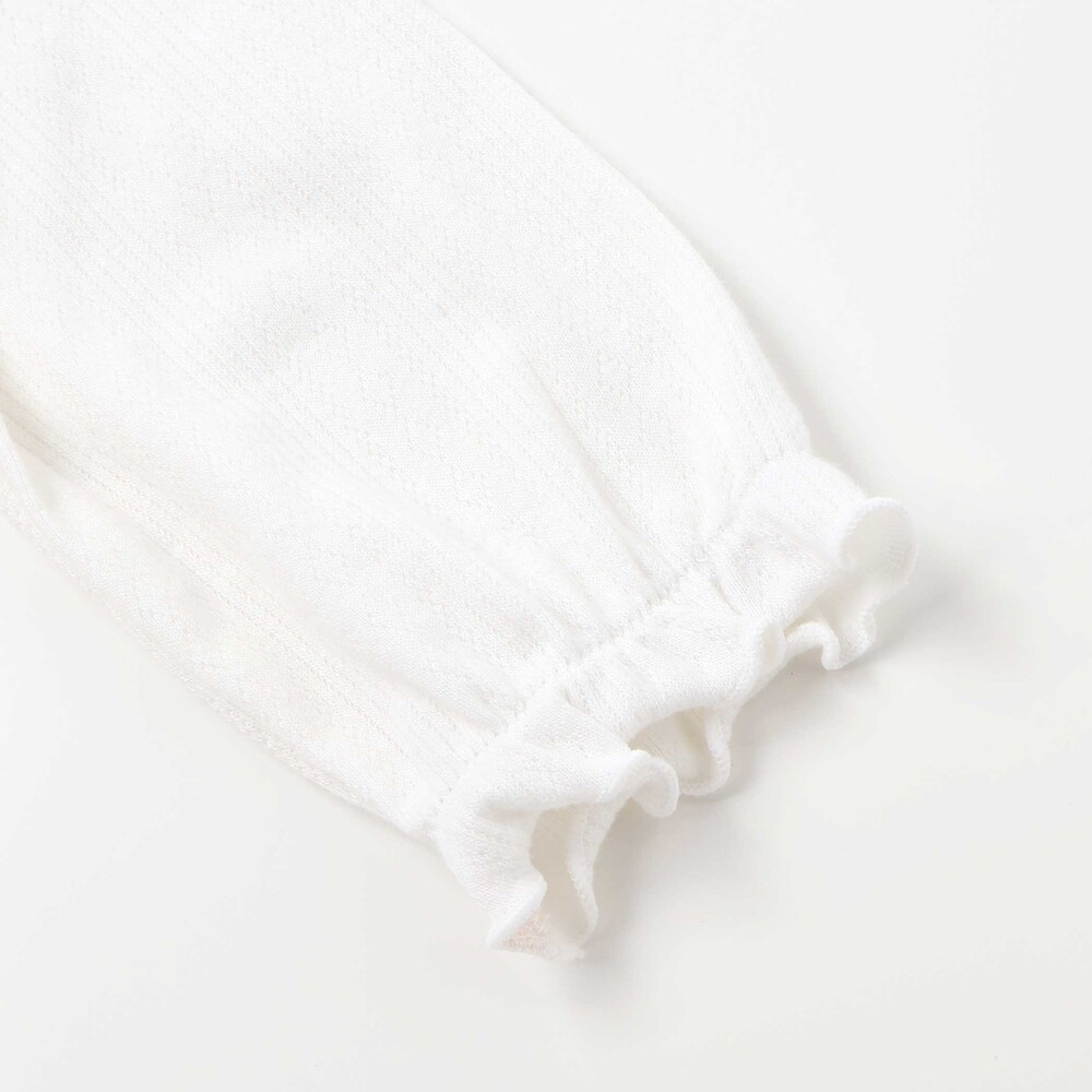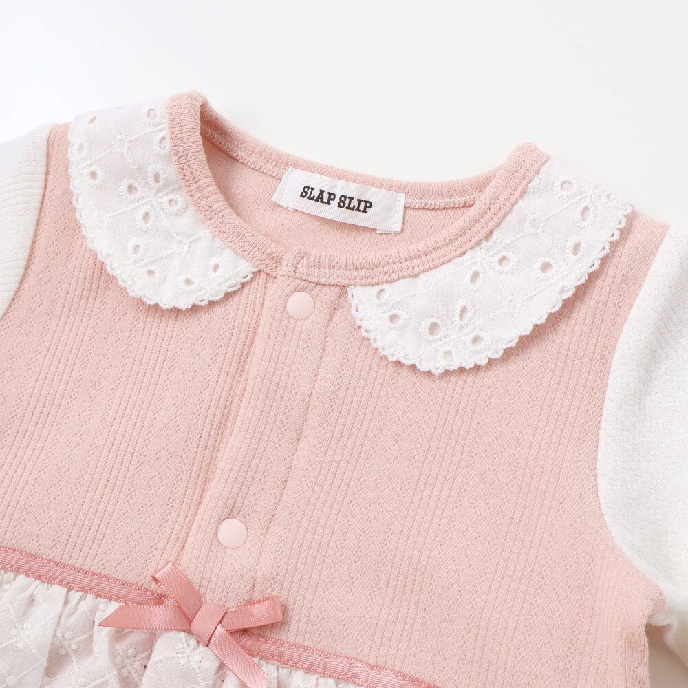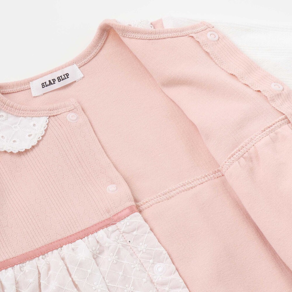 襟には繊細なお花レースを使用して、顔まわりまで可愛らしく演出してくれます。