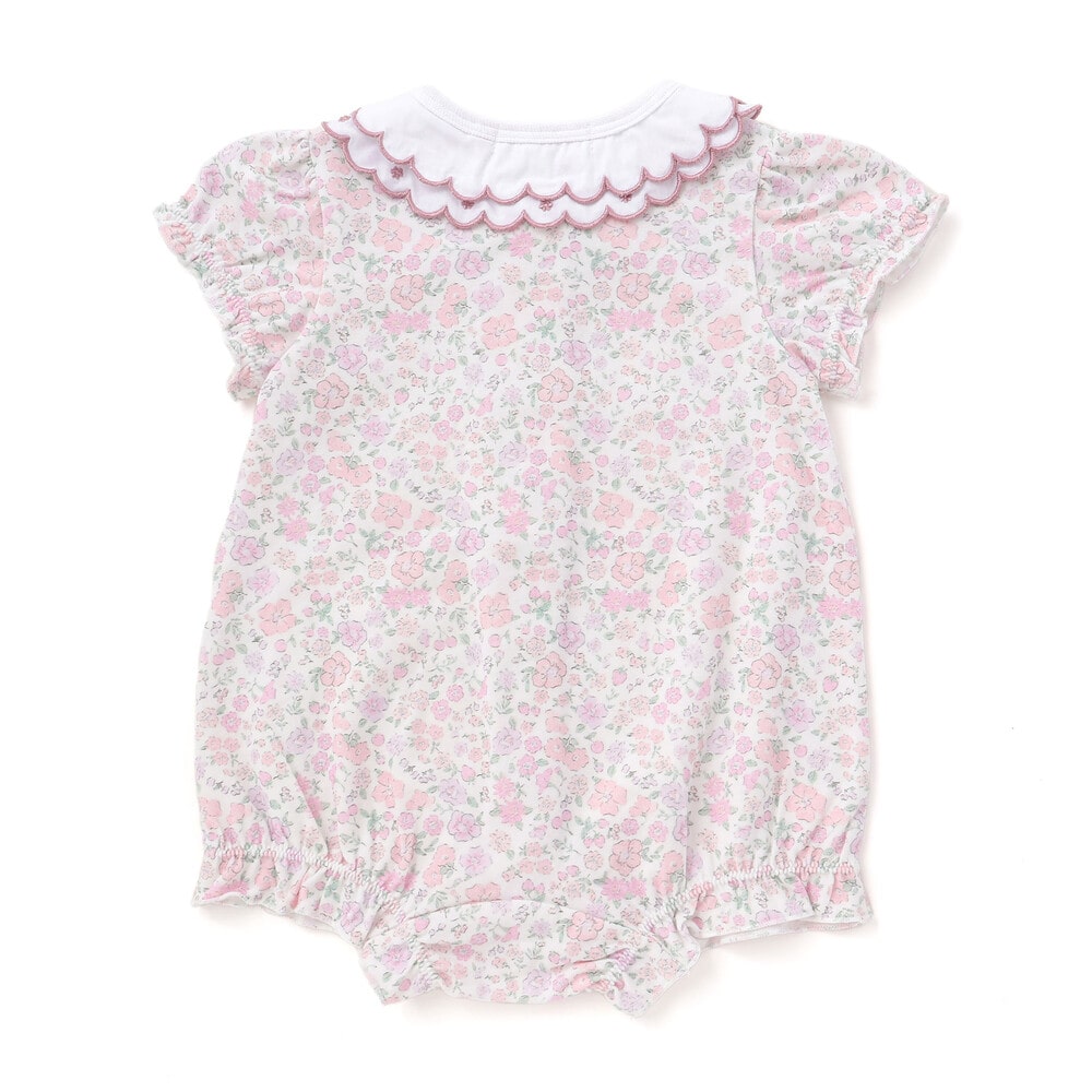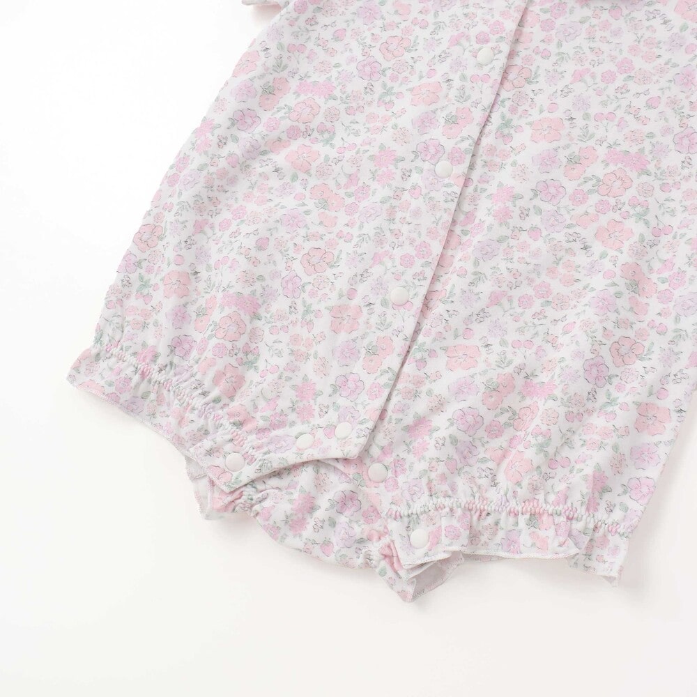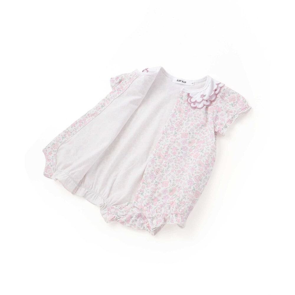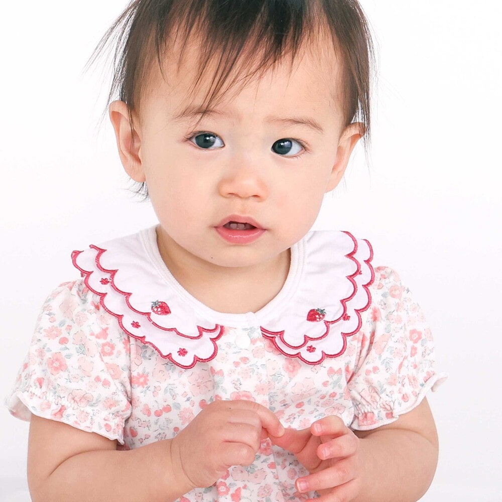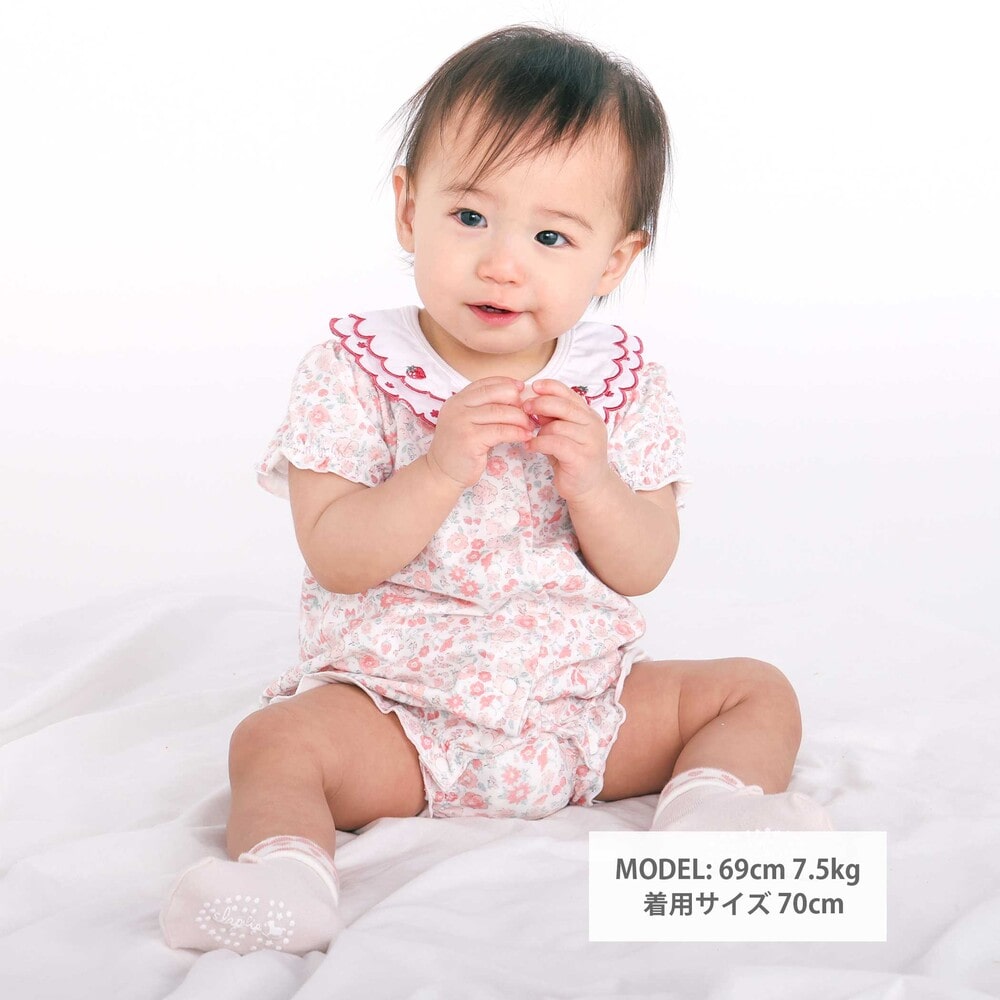 女の子ベビーの可愛らしさを引き立てる、半袖ロンパース。