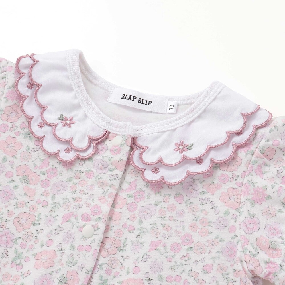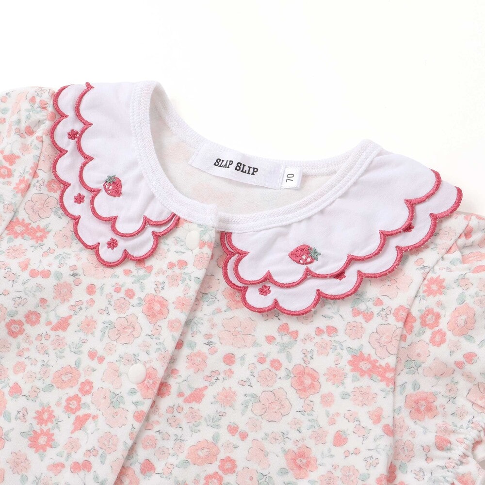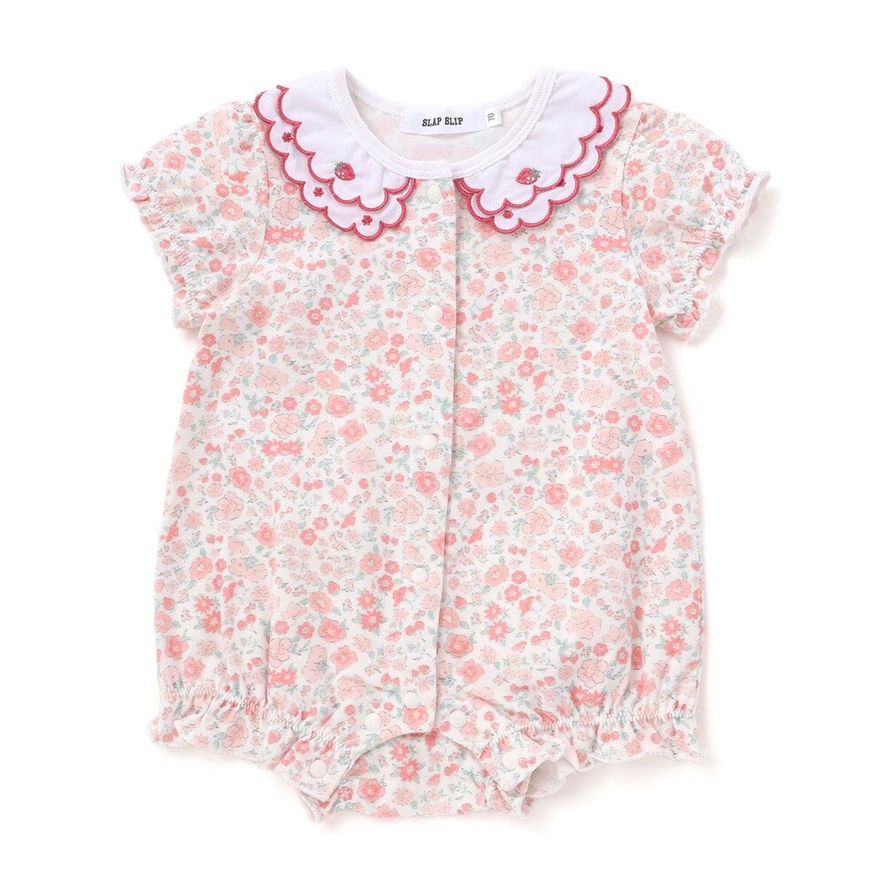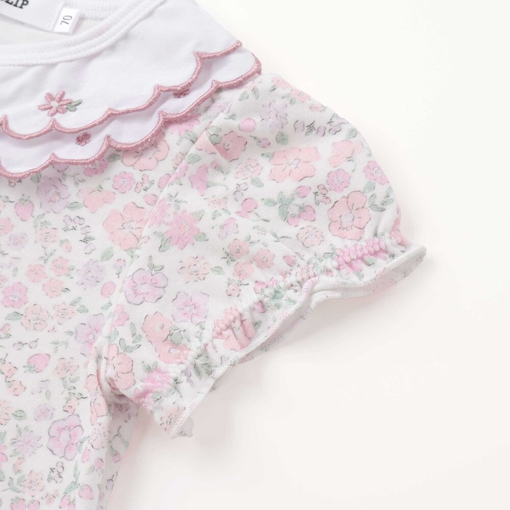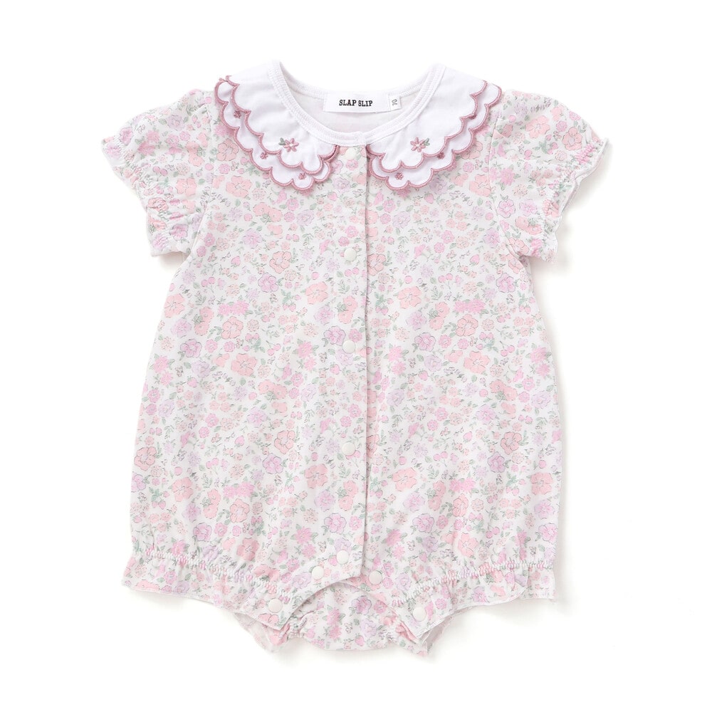 女の子ベビーの可愛らしさを引き立てる、半袖ロンパース。