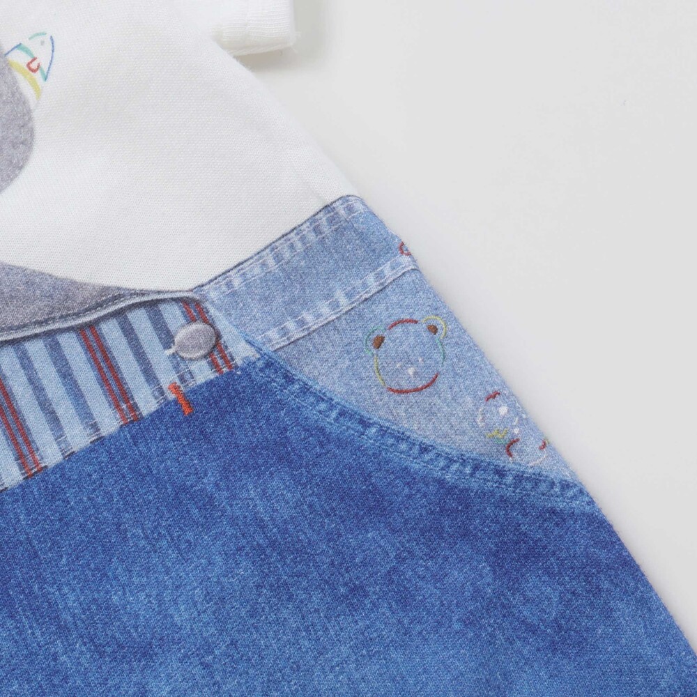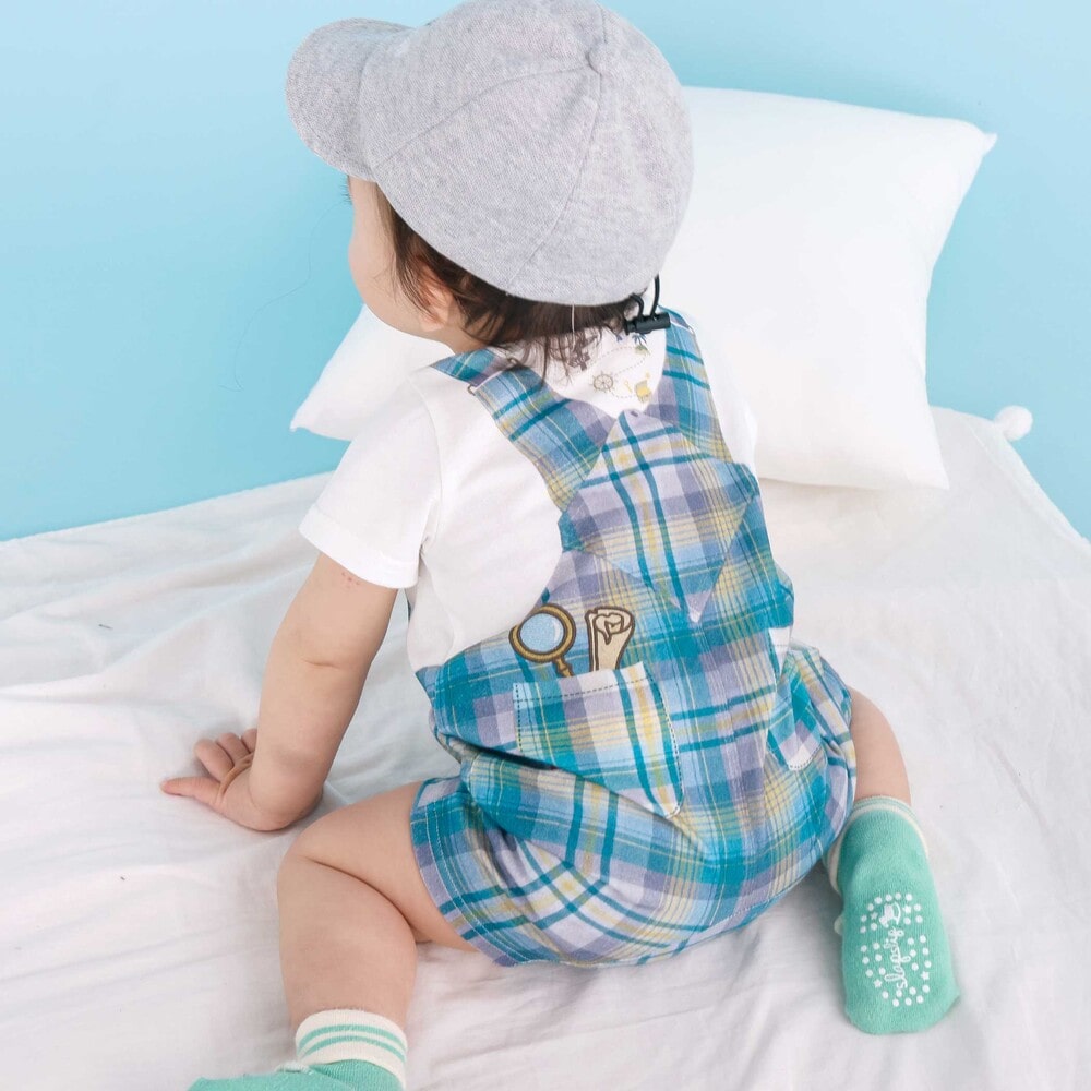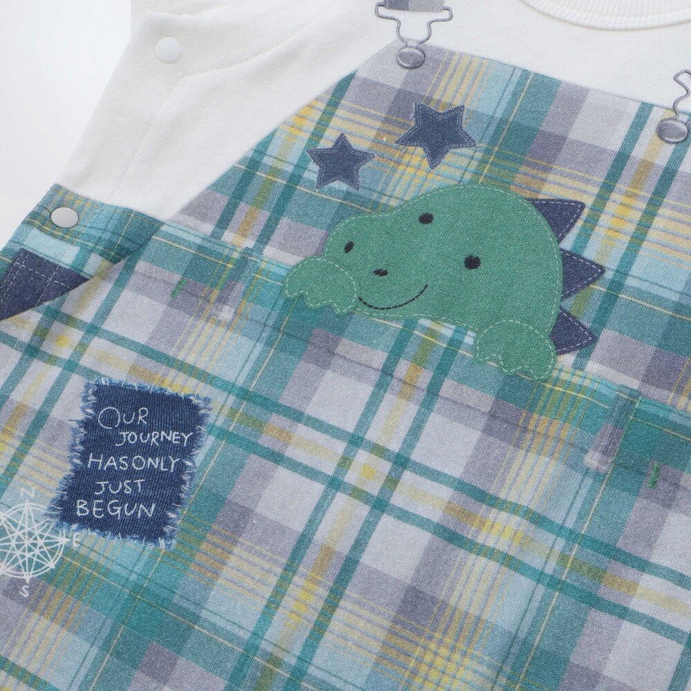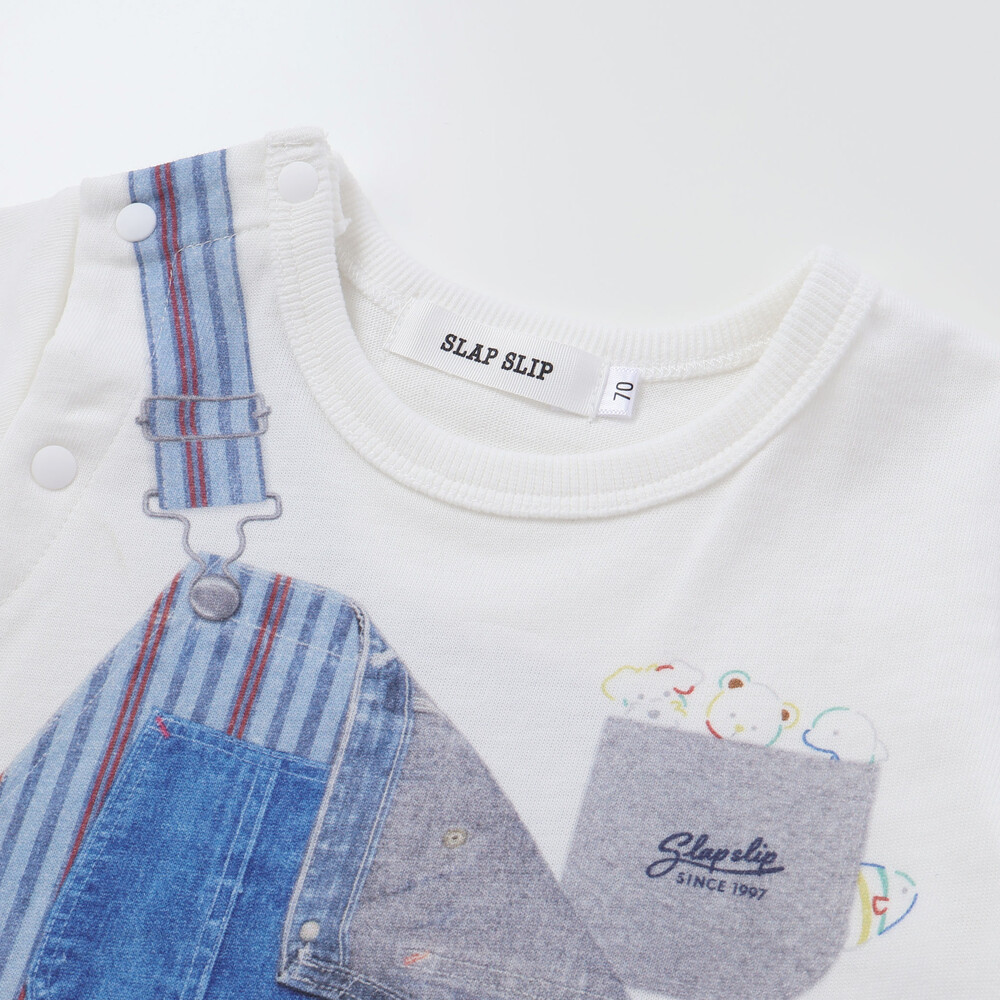 カラーごとにデザインが異なる、男の子ベビー用のサロペット風カバーオール。