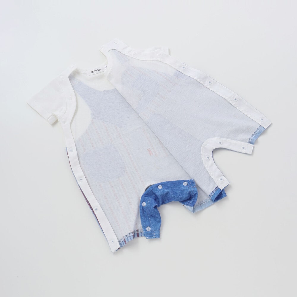着脱のしやすさにもこだわり、右肩から裾まで大きく開く仕様なので、着替えもオムツ替えもスムーズ。