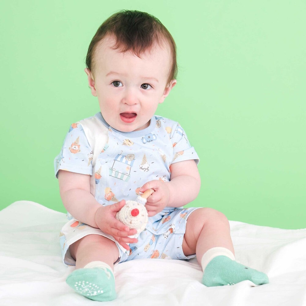ブルー系は、ぱっと見はソフトクリームの総柄のようで、よく見るとアイスの部分が動物になった遊び心いっぱいのデザイン。