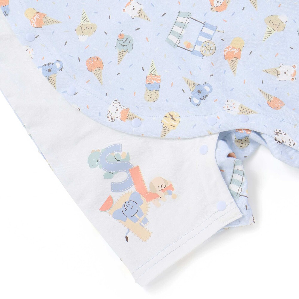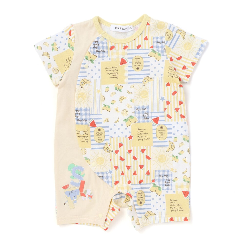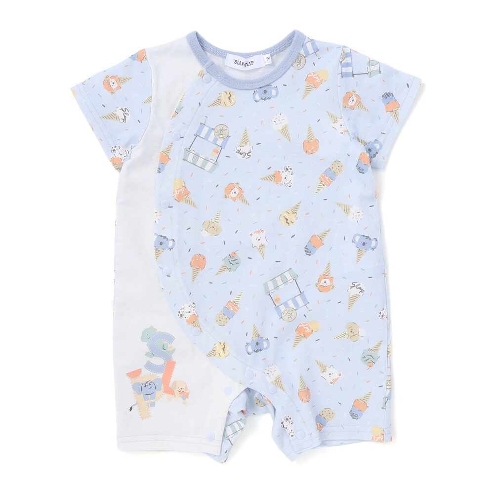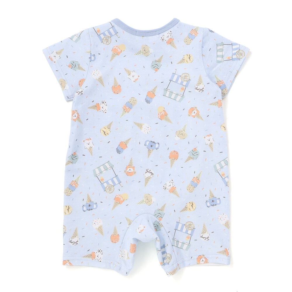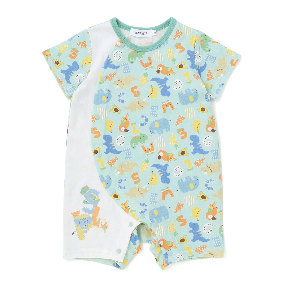 カラーごとに違った総柄が楽しめる、ベビー用カバーオール。