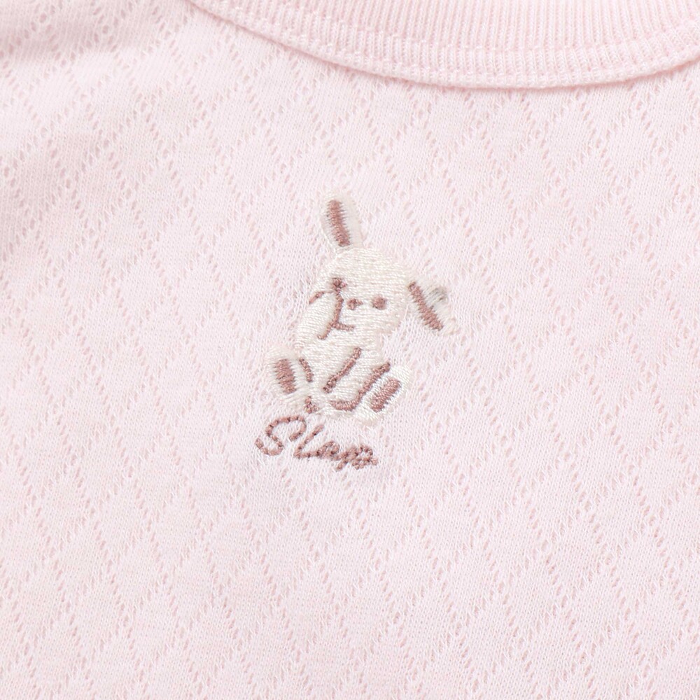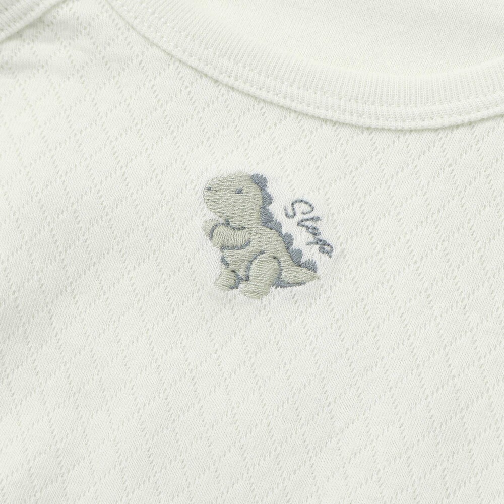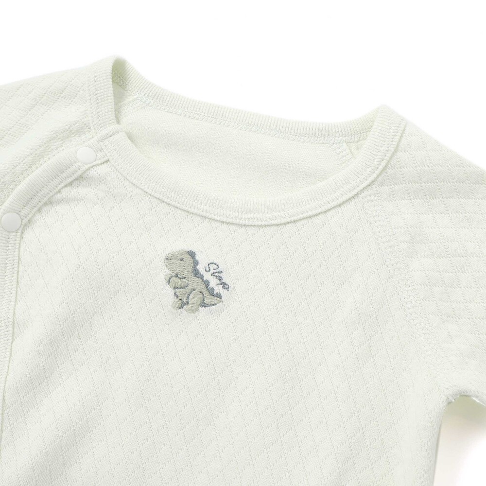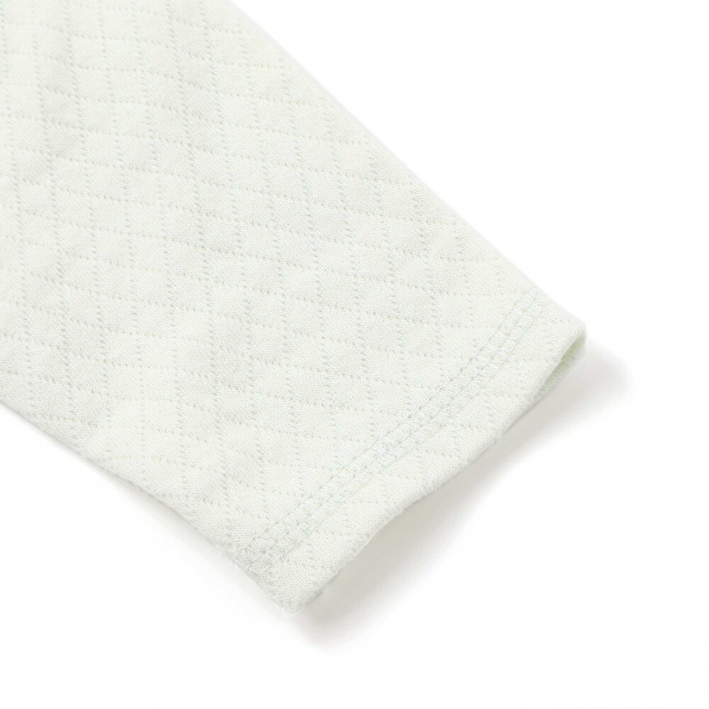 股下にはスナップが付いていて、足をバタバタしてもはだけにくく、オムツ替えもラクラクな設計です。
