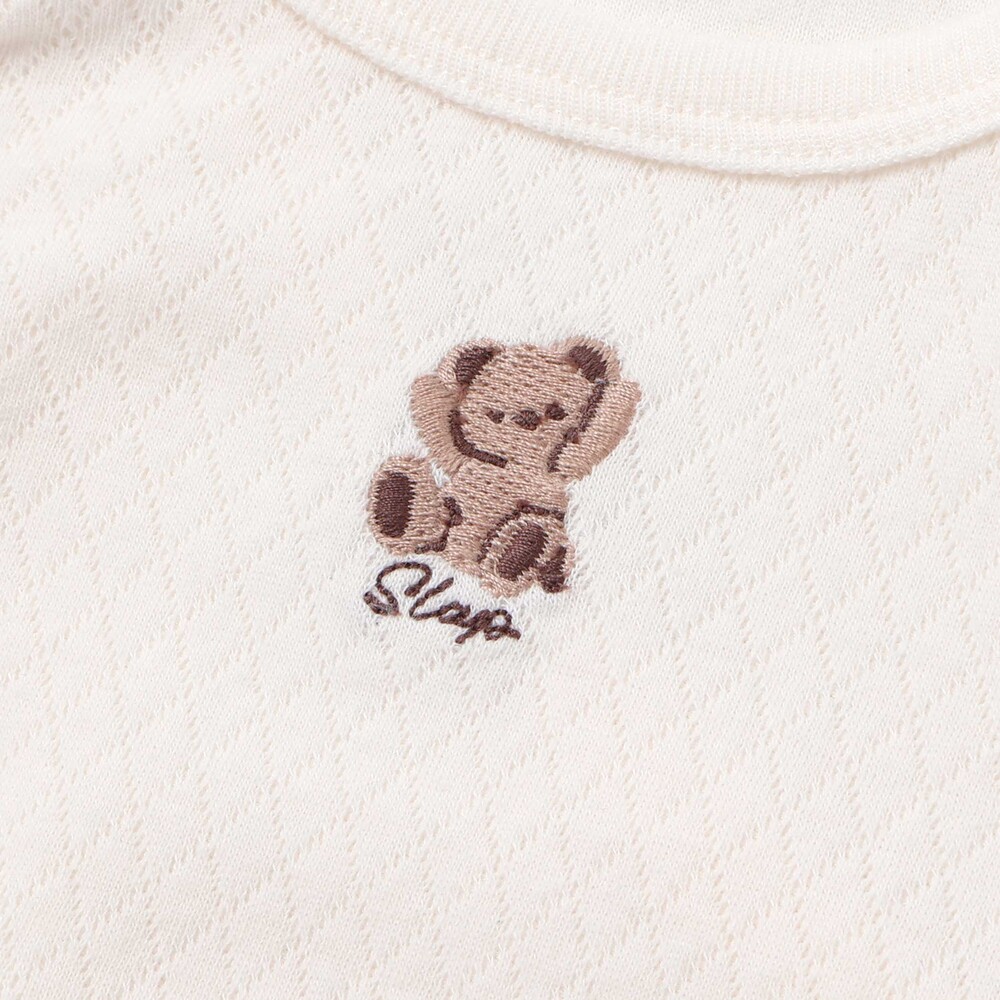 オフホワイト:優しいイエローがかったオフホワイトには思わず笑顔になるバンザイポーズのクマさん。