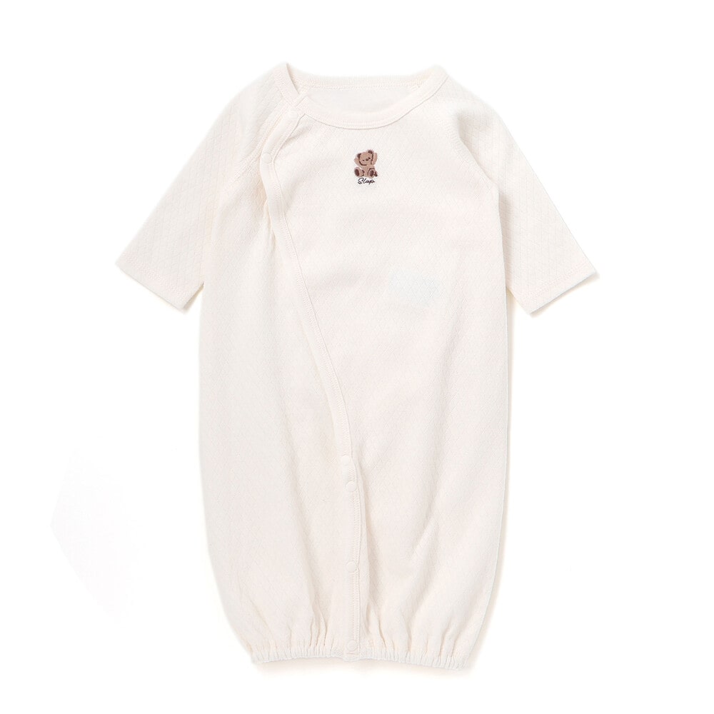 ボタンの留め方を変えることで「ドレス」と「カバーオール」の2WAYで使えるため、新生児期からねんね期まで長く活躍します。