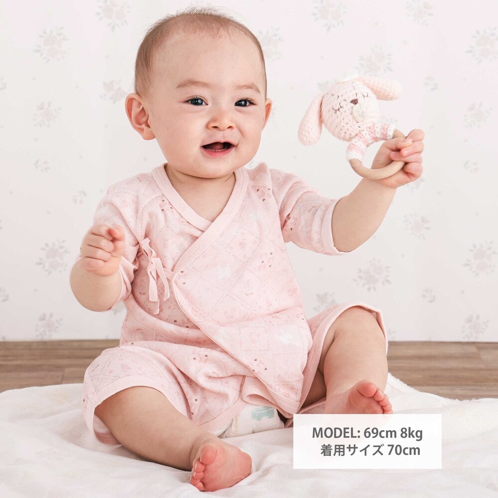 やさしい雰囲気の総柄が赤ちゃんの可愛らしさを引き立て、出産準備のひとつとしてもオススメ。