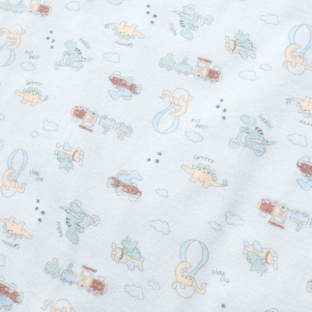 ブルー:ぷかぷか気球にブルルンくるま、ブーンと飛行機にぶいーんとすすむバイク、いろんな乗り物に乗った恐竜さんがカワイイ!