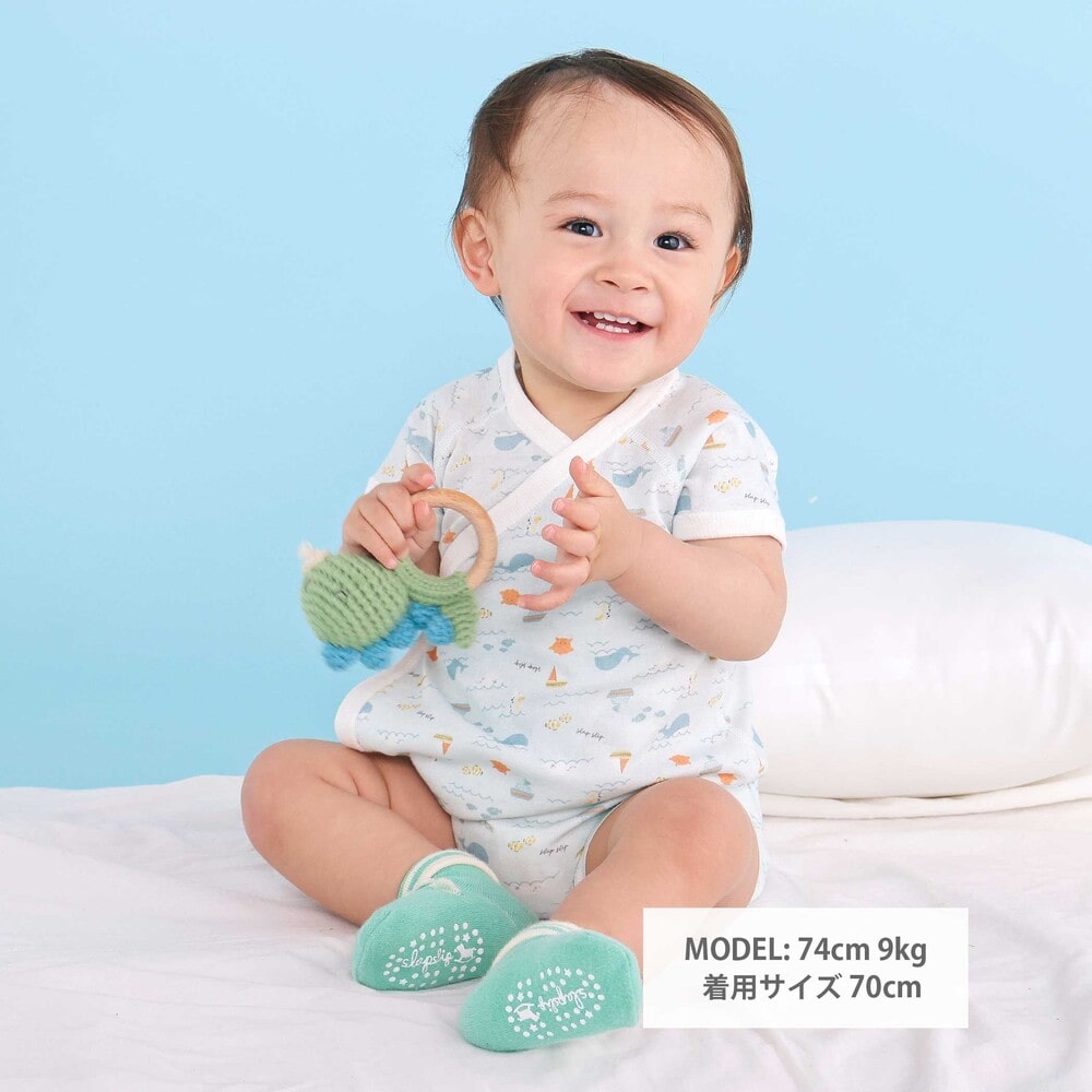 柔らかく伸びのあるフライス生地を使用し、肌ざわりがよく、赤ちゃんの動きにしっかり寄り添ってくれます。