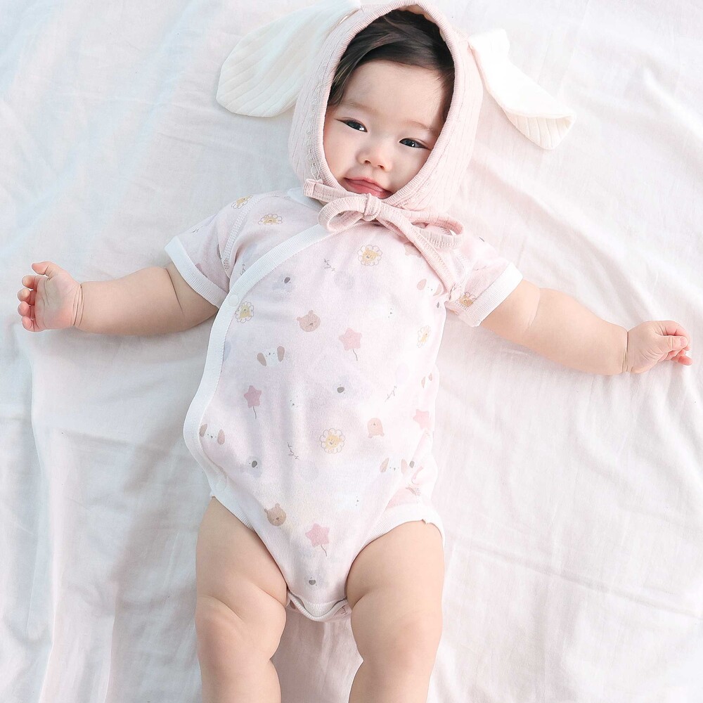 総柄プリントがとっても可愛い、ベビー用の半袖肌着。