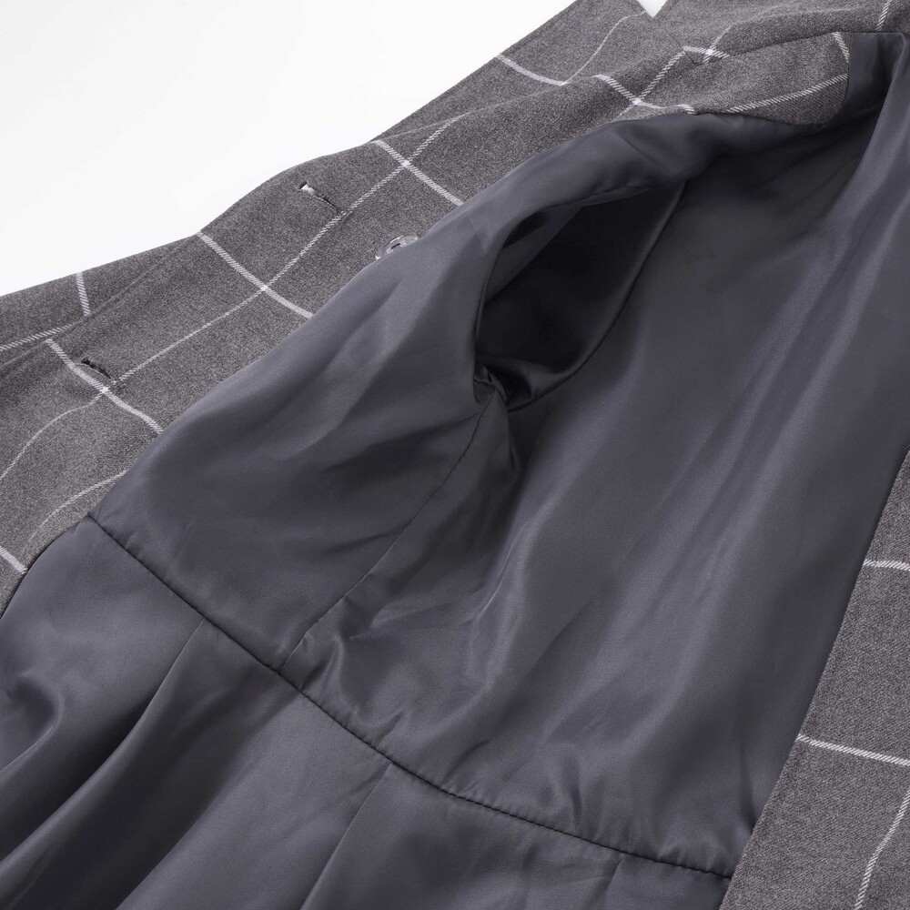 グレー系のチェック柄は、トラッドな雰囲気で上品かつ洗練された印象に。