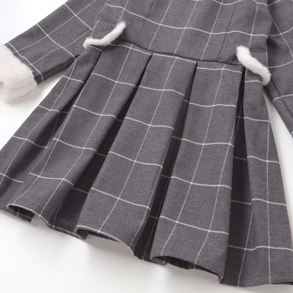 袖口やポケットフラップについたファーが秋冬映えするワンピース。