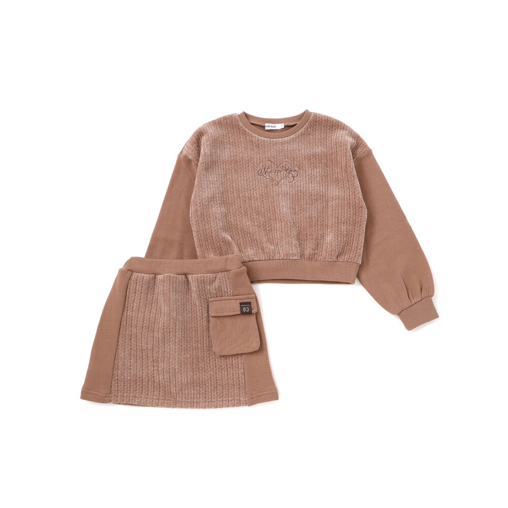 異素材切り替えが魅力のトレーナー&スカパンのセットアップ。