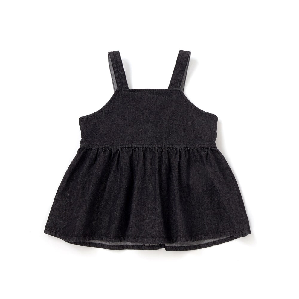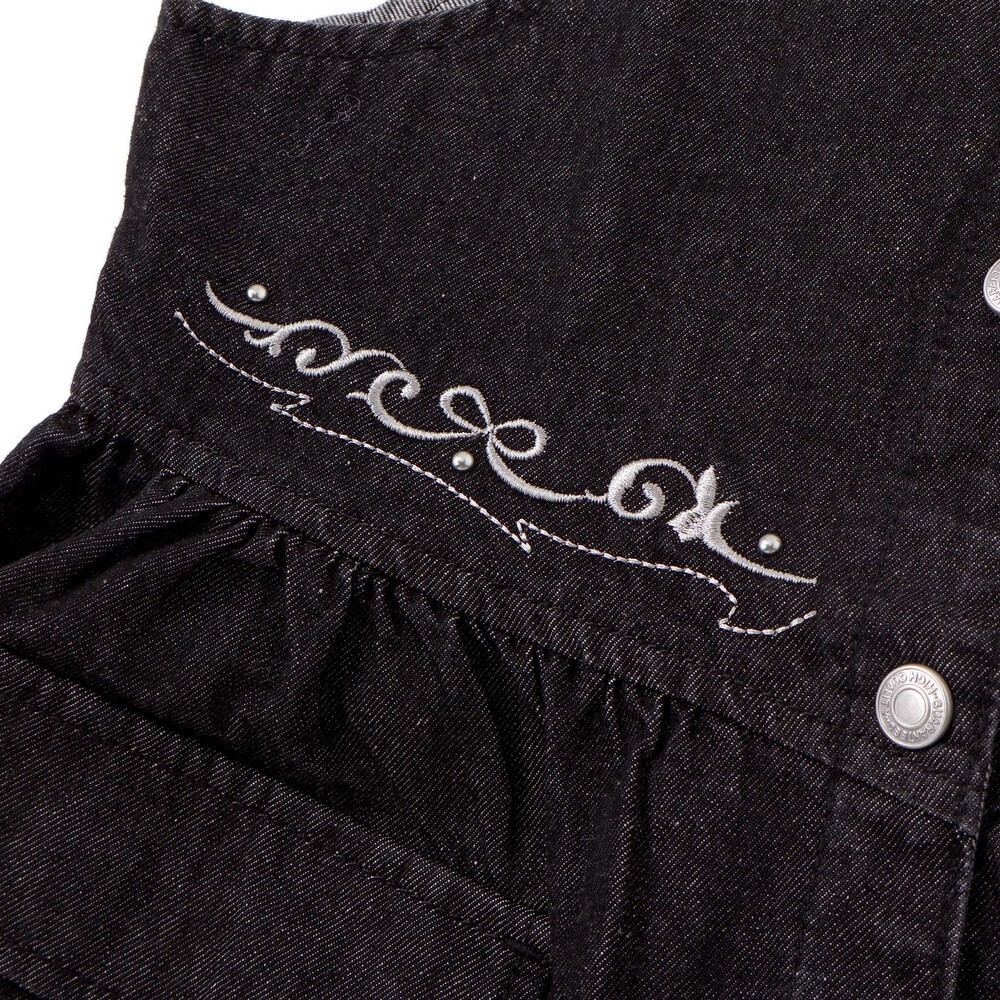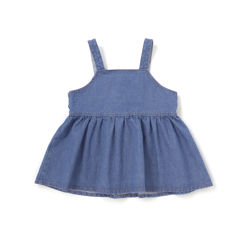 前ホック開きのデニムビスチェは、胸元の切り替えにギャザーを寄せてガーリーな印象に。