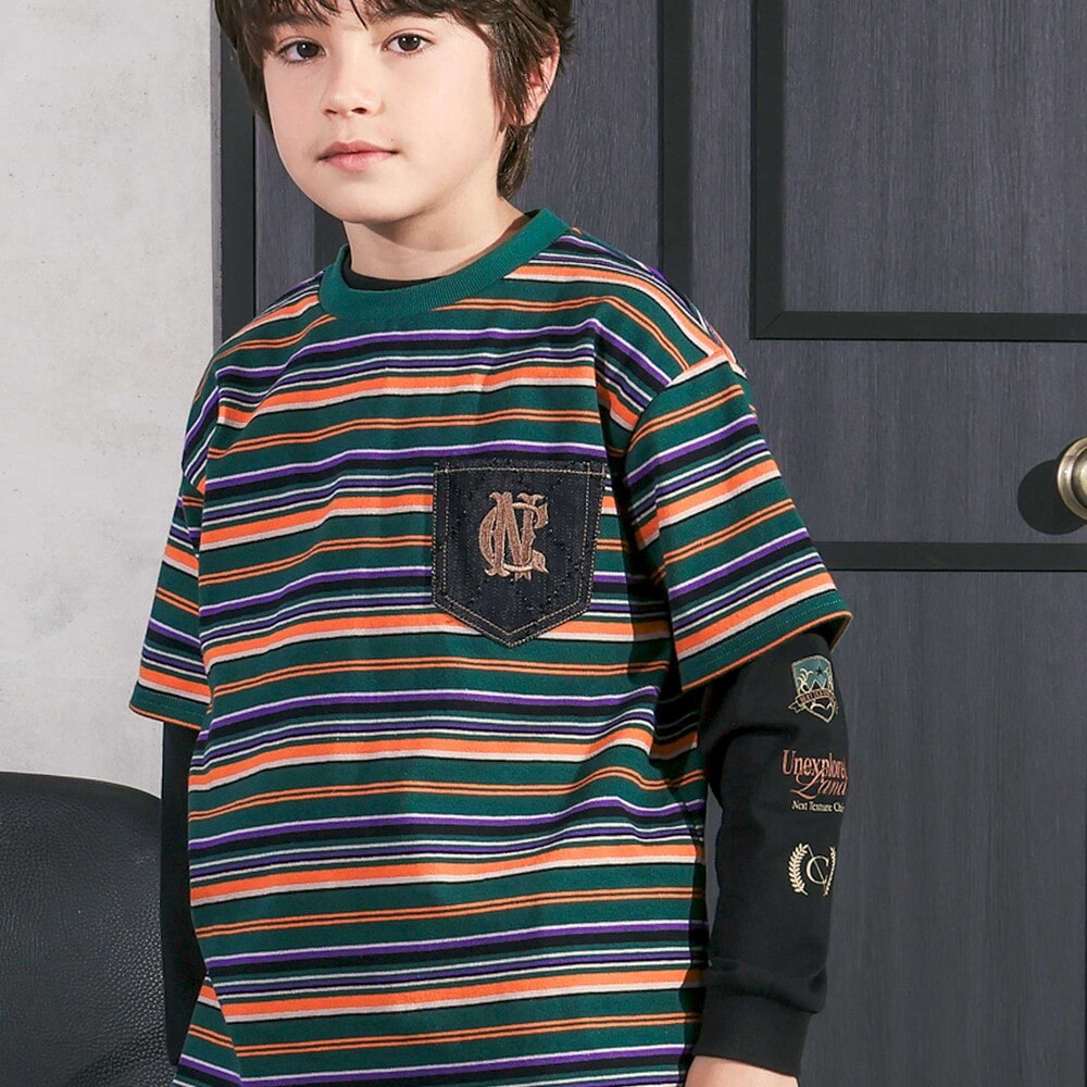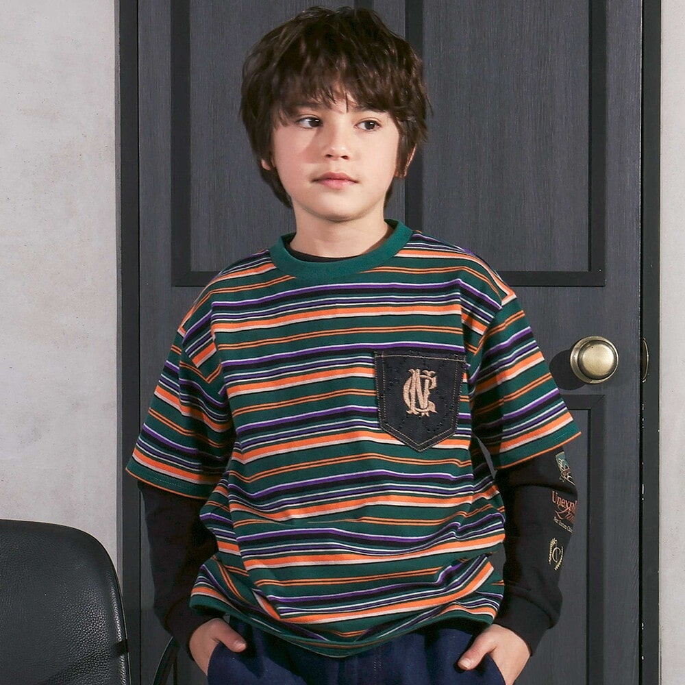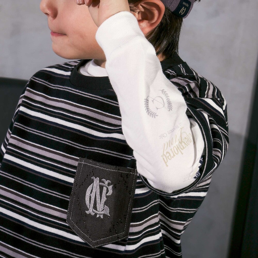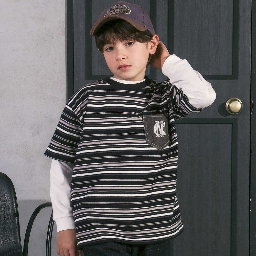 ロゴ×ボーダーで遊び心をプラスした男の子用長袖&半袖のTシャツセット。