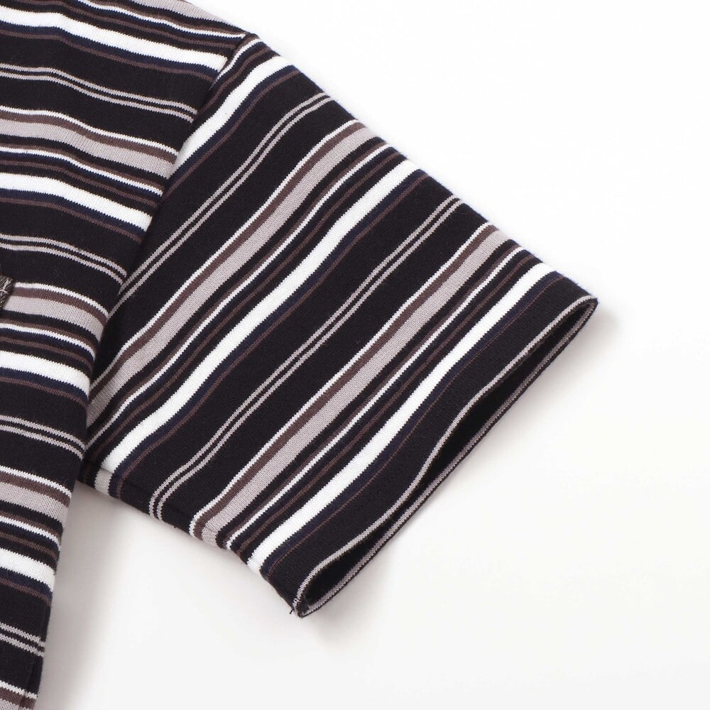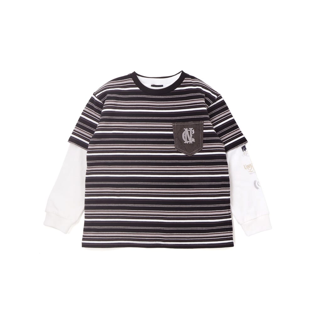 ホワイトの長袖にブラック系ボーダーの半袖を合わせたブラック系とブラックの長袖にグリーン系ボーダーの半袖を合わせたグリーン系の2色展開。