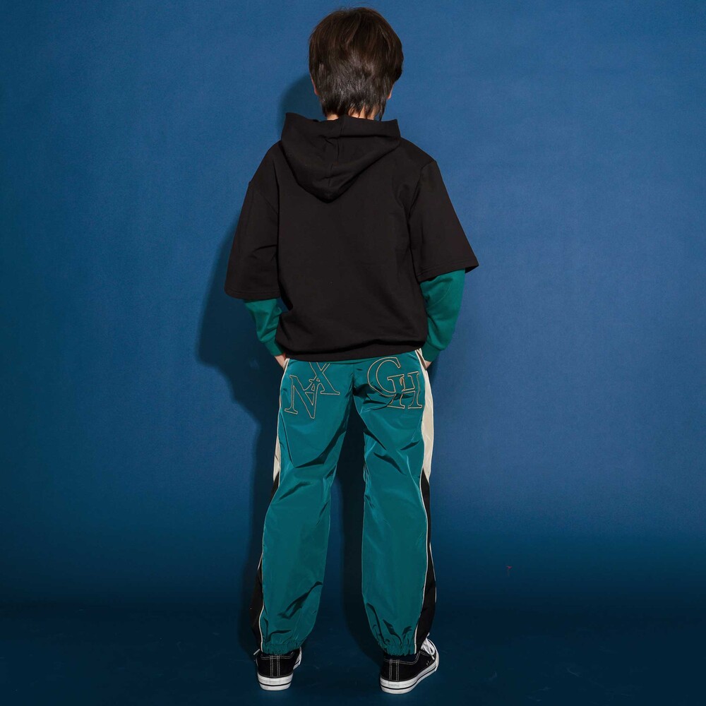 半袖パーカーと長袖Tシャツの男の子用セットアイテム。