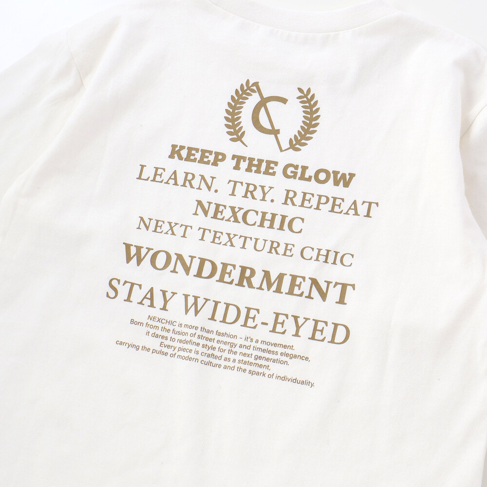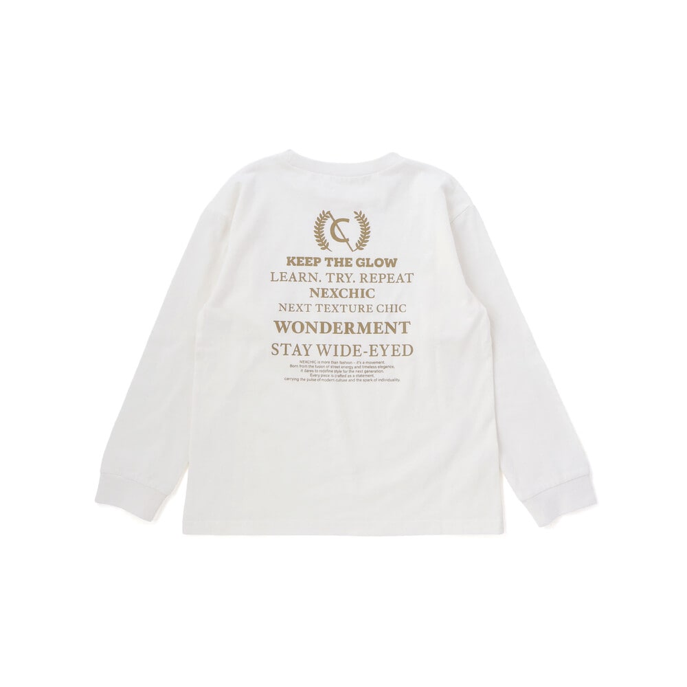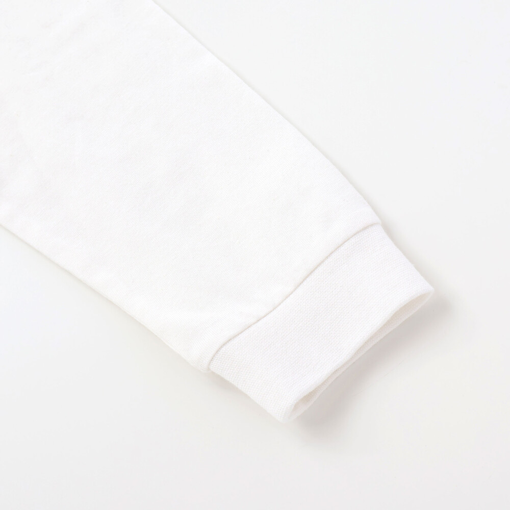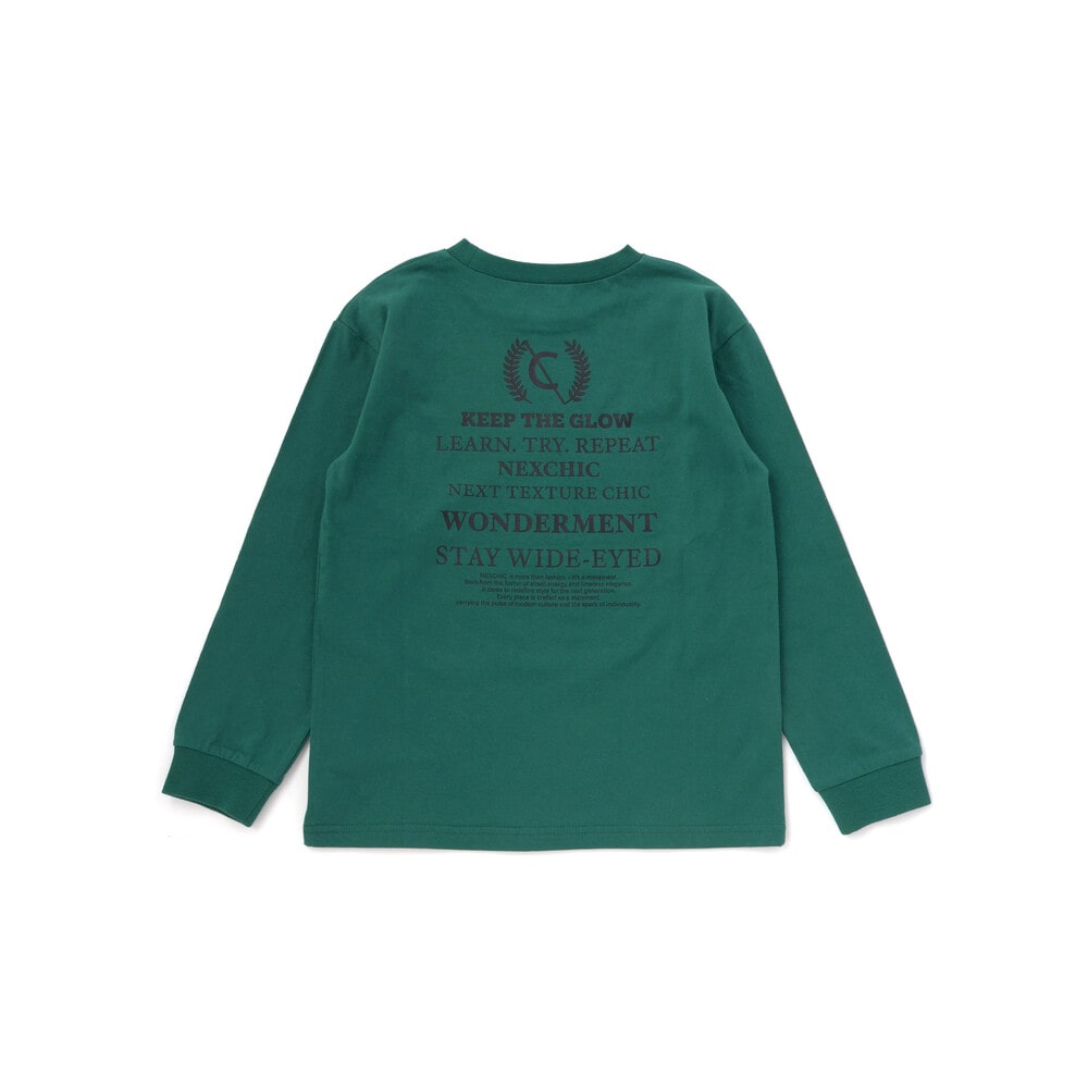 長袖Tシャツは柔らかな天竺素材で、背面にロゴとプリントをプラスして後ろ姿もおしゃれに仕上げています。
