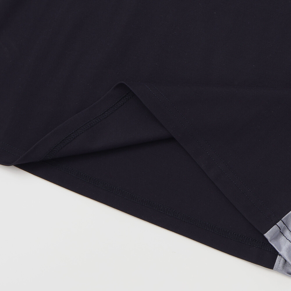 襟元に伸縮性に優れたスパンテレコを使用しているため、首回りがヨレにくく、スムーズな着脱が可能です。