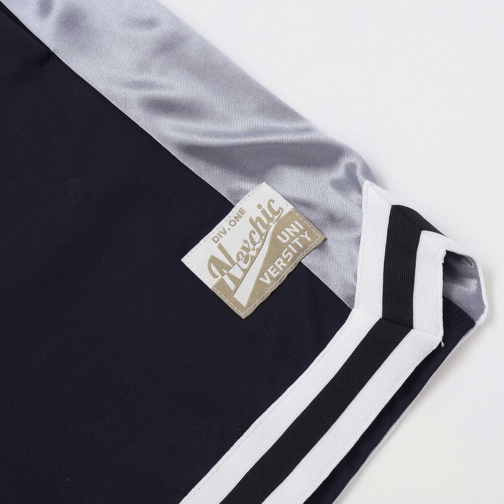 サテンの光沢で魅せるアーバンスポーツスタイル。