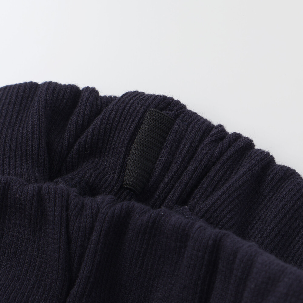 右裾にはブランドロゴプリント、左裾口には織ネームをあしらい、足元まで抜かりないディテールにこだわりました。