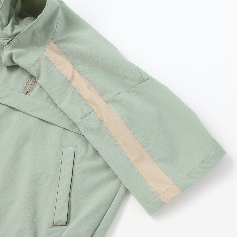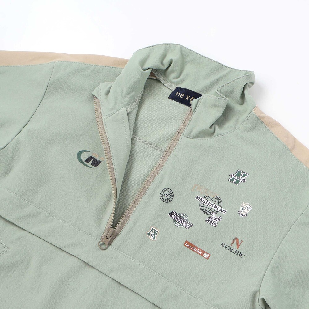首元はファスナーの開閉で印象を変えられるハーフジップ仕様。
