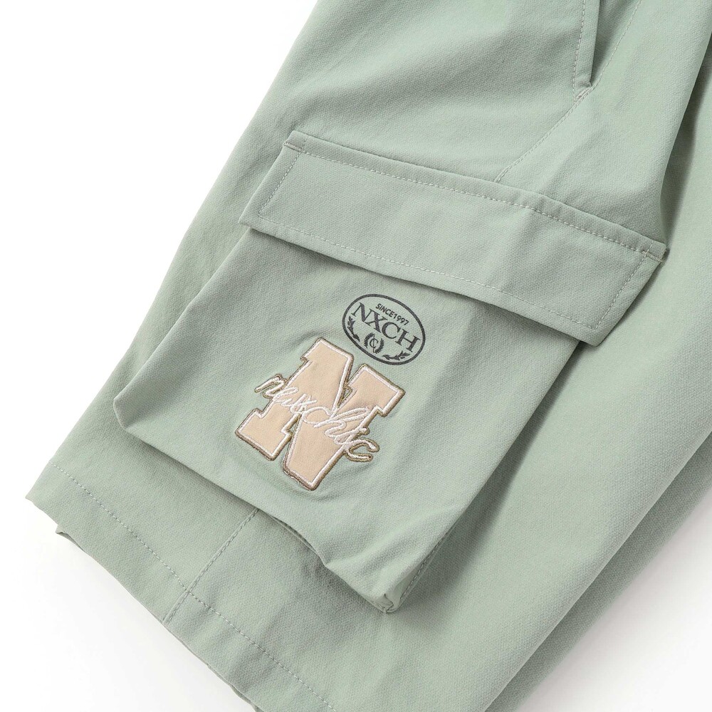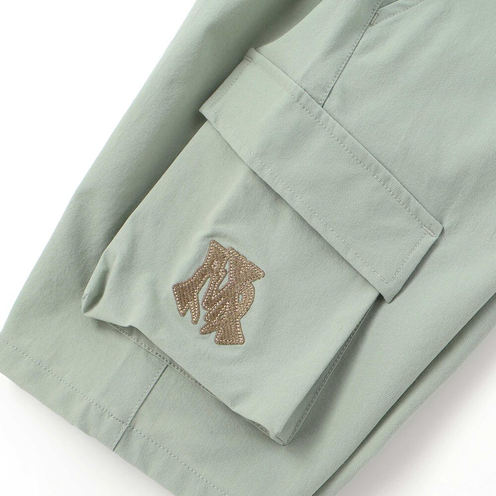 パンツの腰両脇には、配色切り替えを施したフラップ付きのポケットを配置。