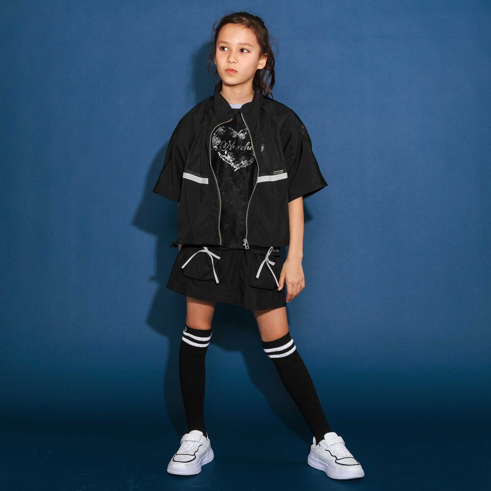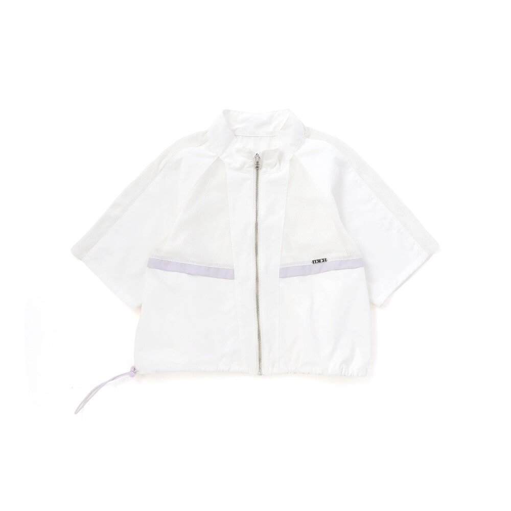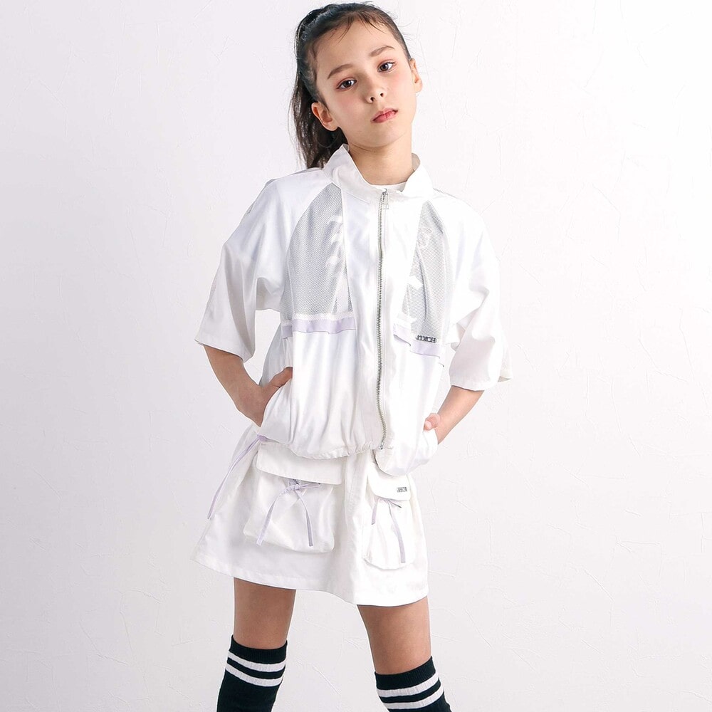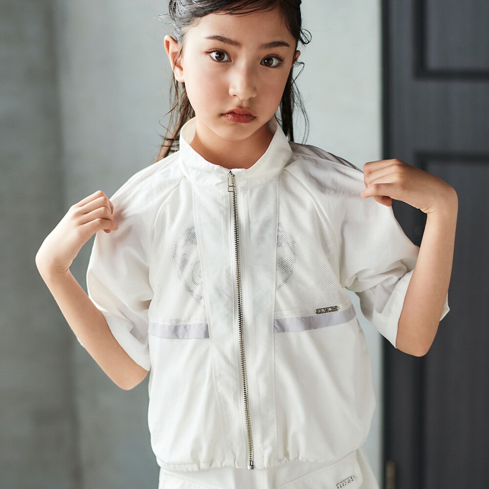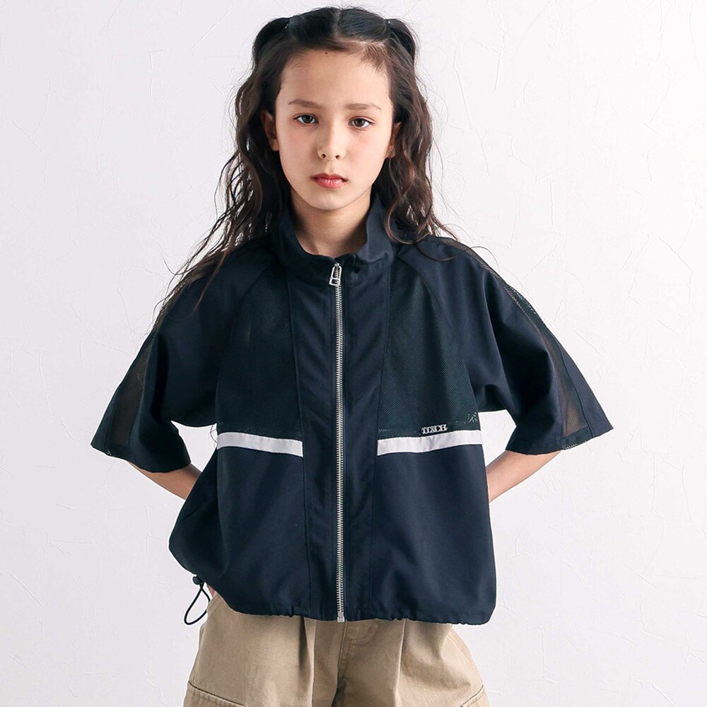 メッシュ×タフタの切り替えが映える女の子用ジップアップジャケット。