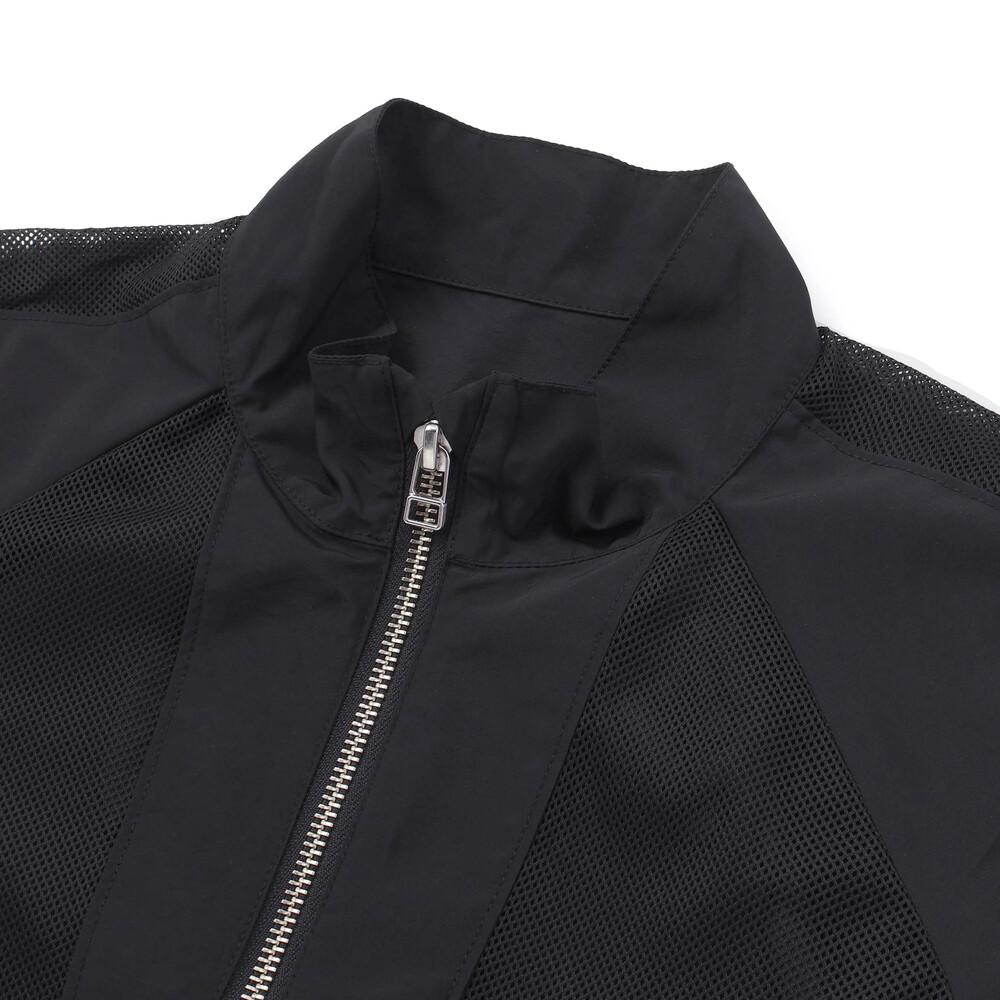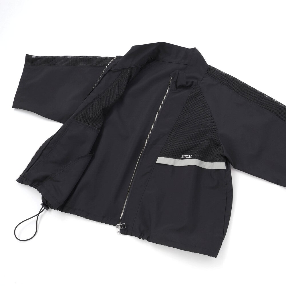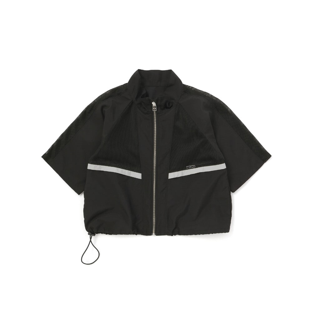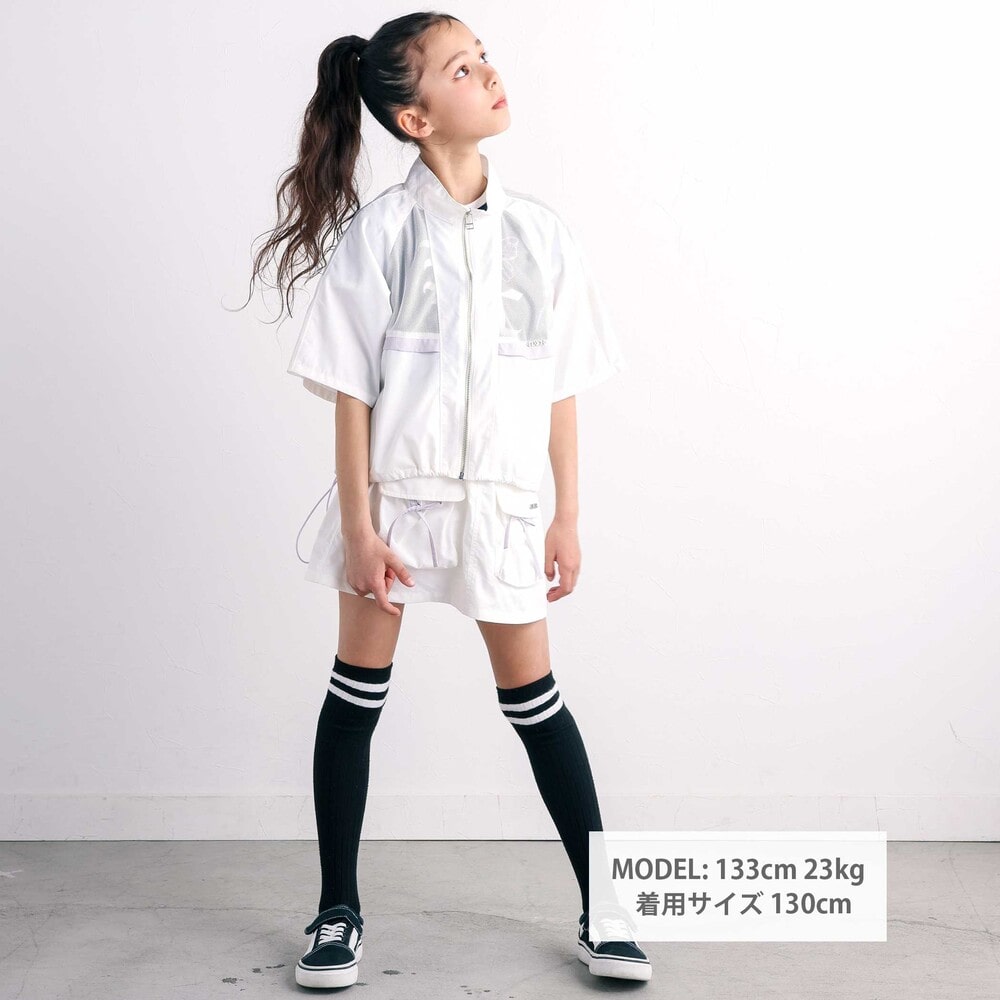 メッシュ×タフタの切り替えが映える女の子用ジップアップジャケット。