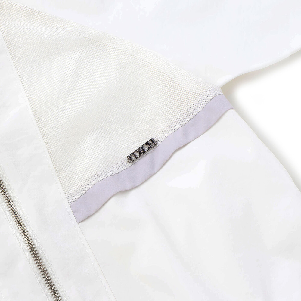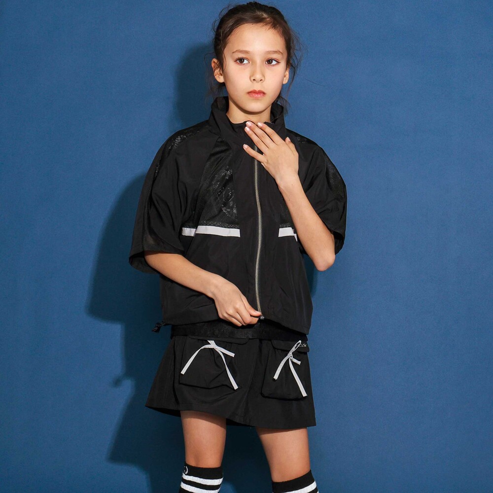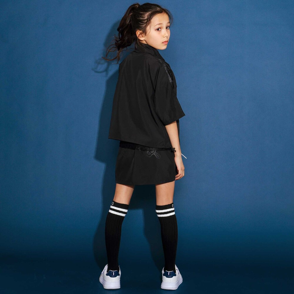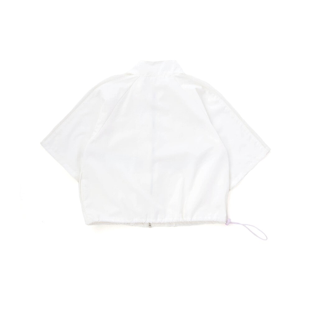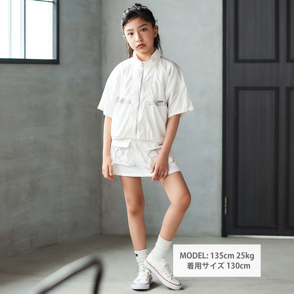 メッシュ×タフタの切り替えが映える女の子用ジップアップジャケット。