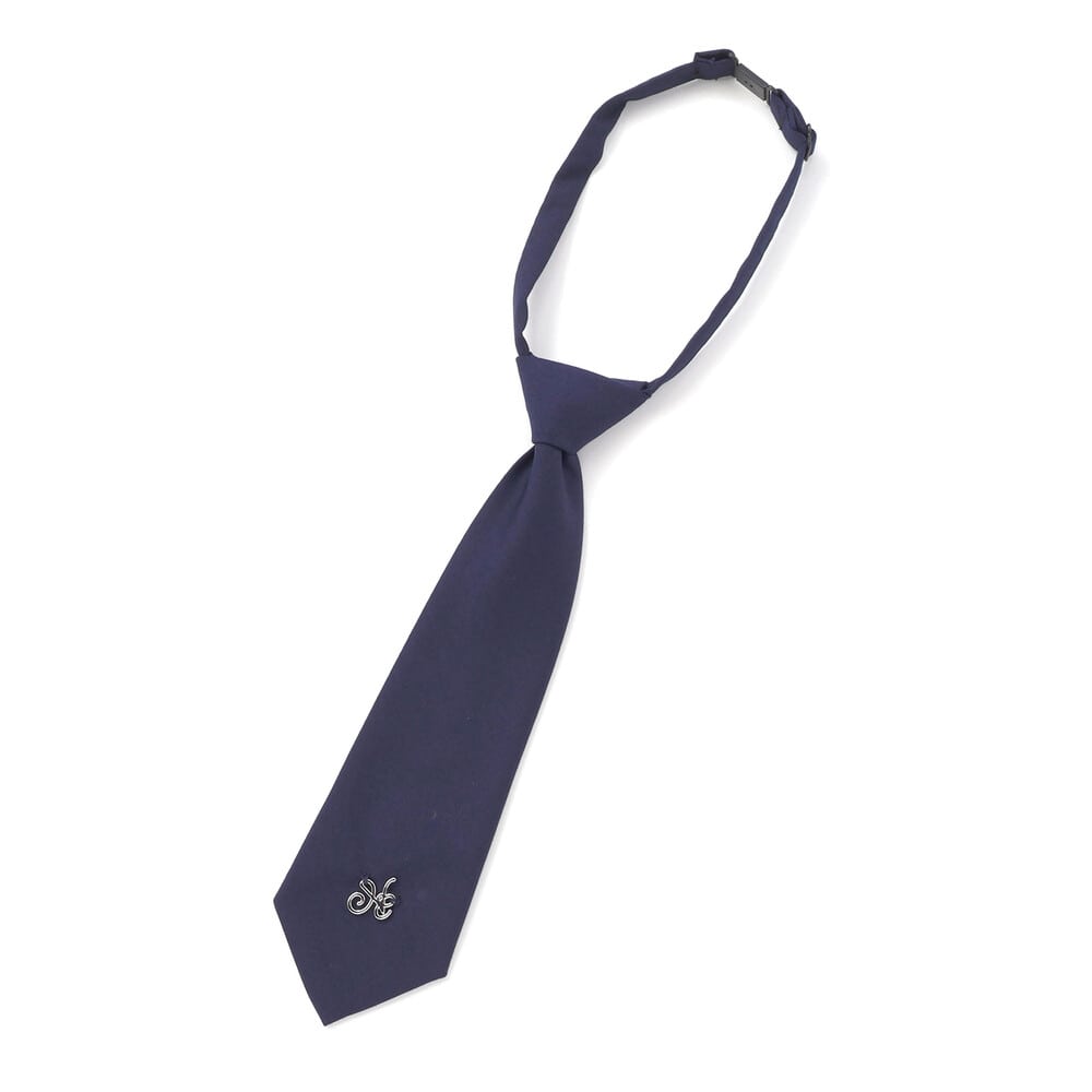 胸元にはロゴ刺しゅう、ネクタイにはチャームをあしらい、さりげないアクセントをプラスしました。