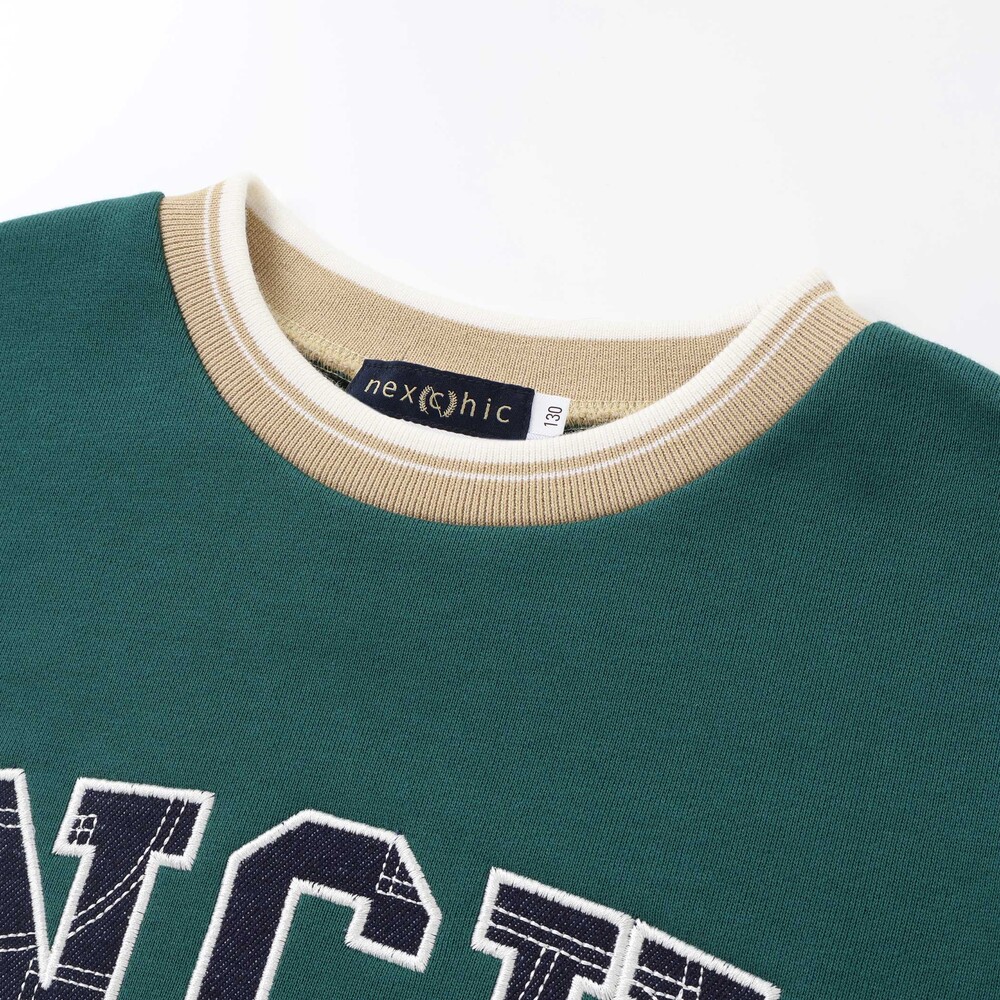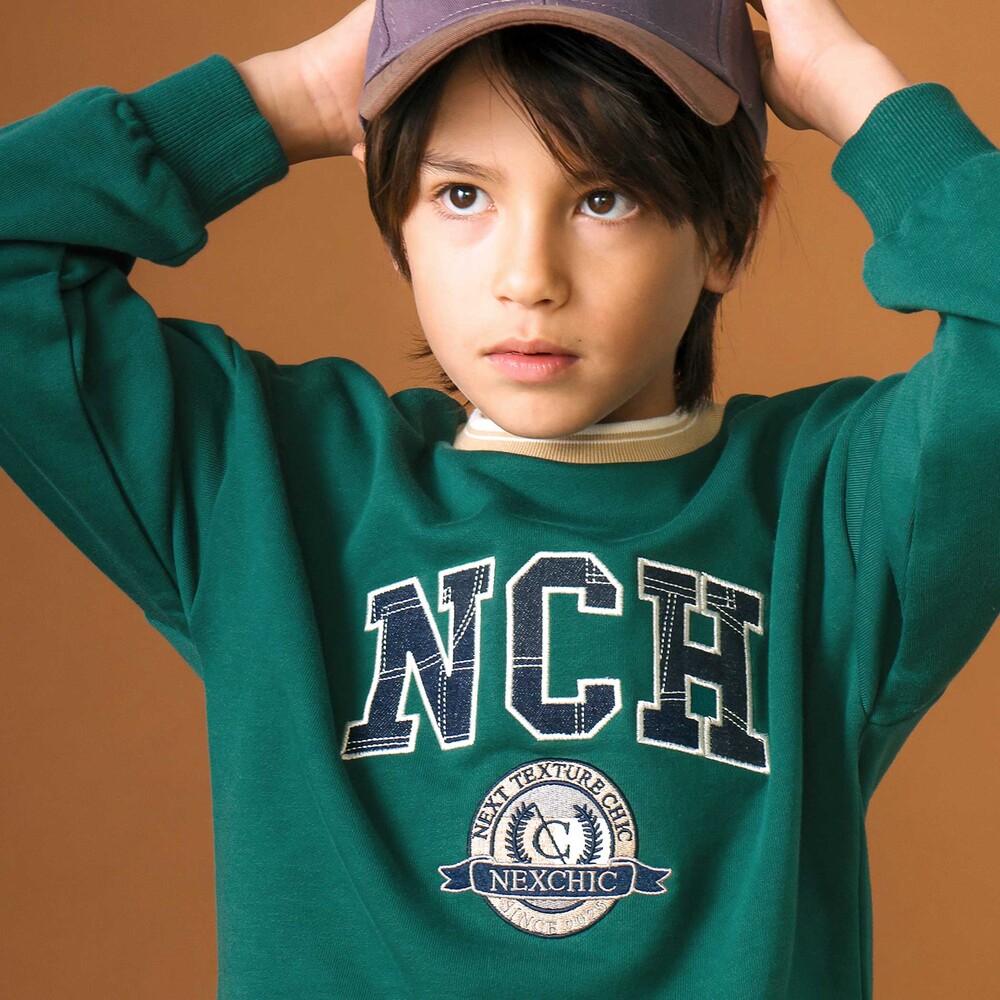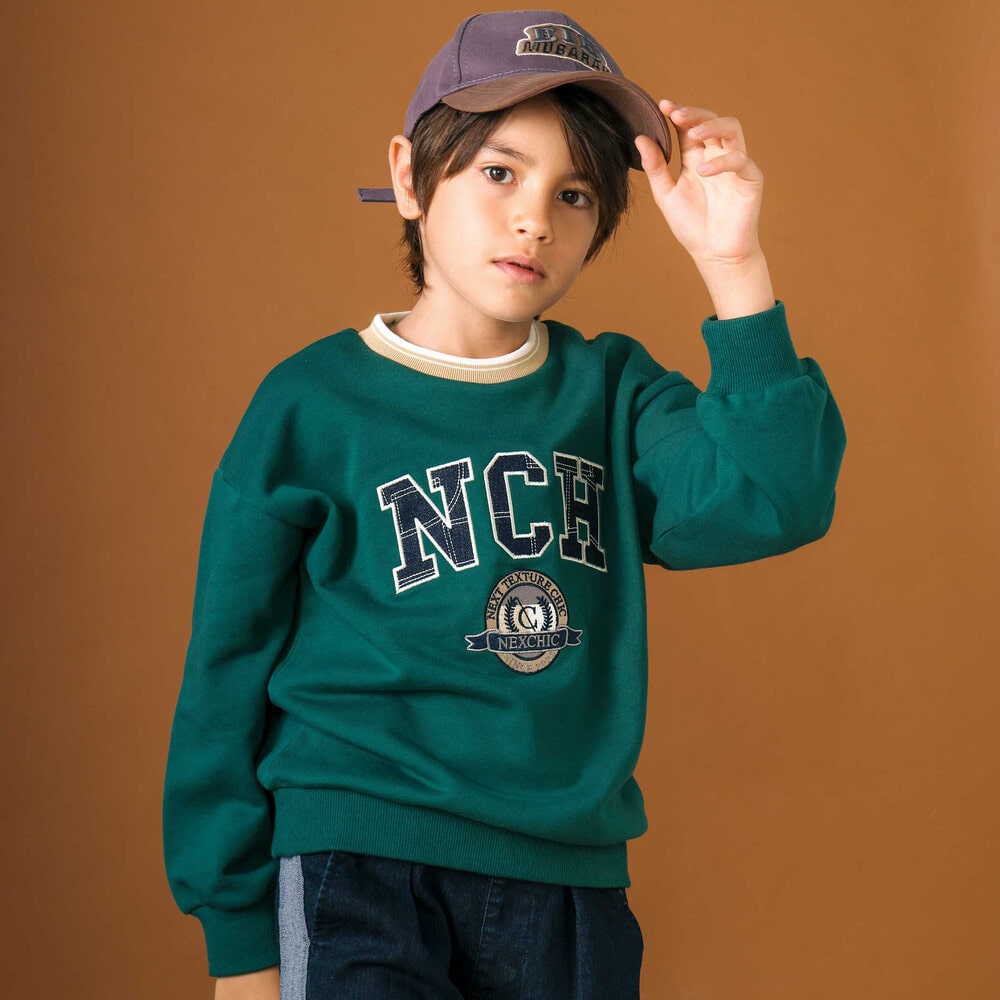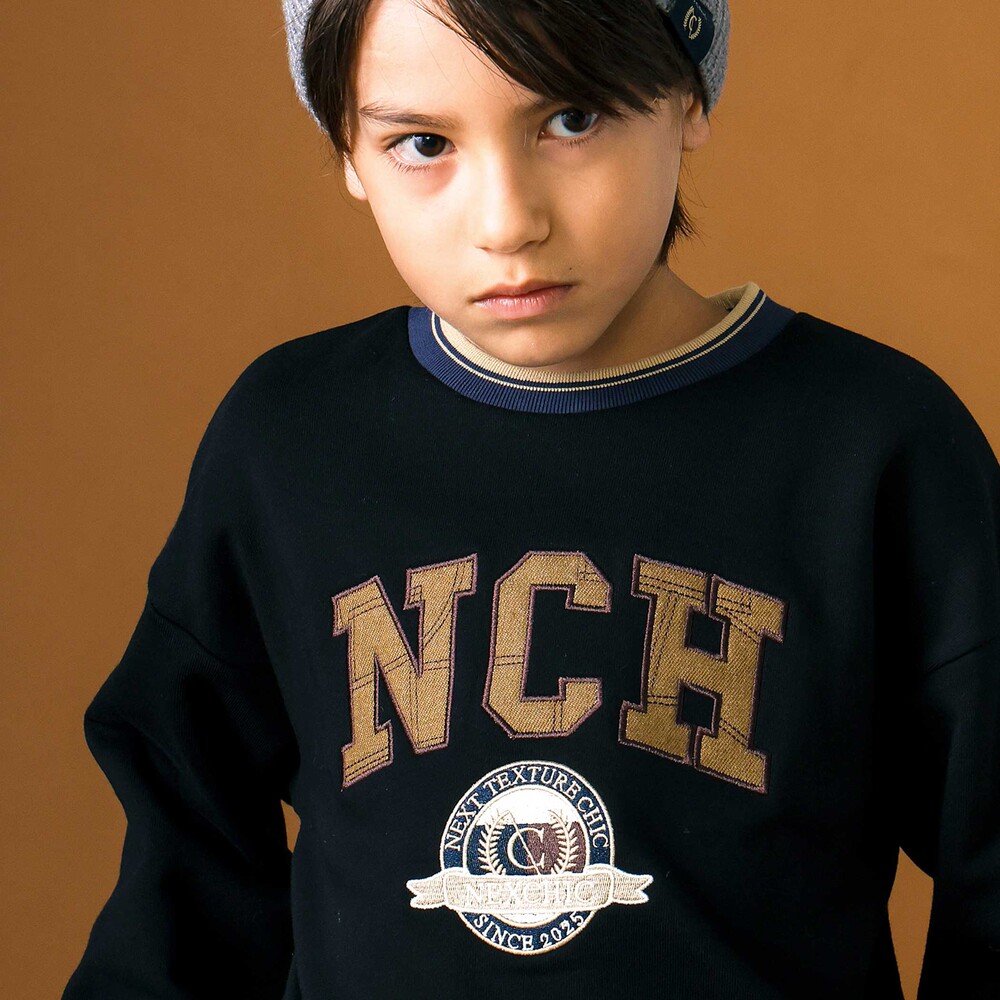 デニム・ツイルパッチと刺しゅう入りの個性的な男の子用トレーナー。