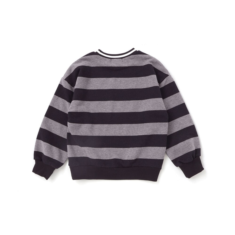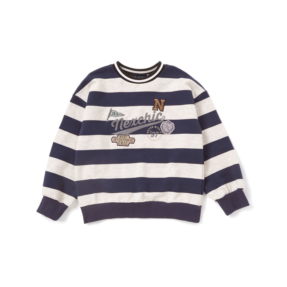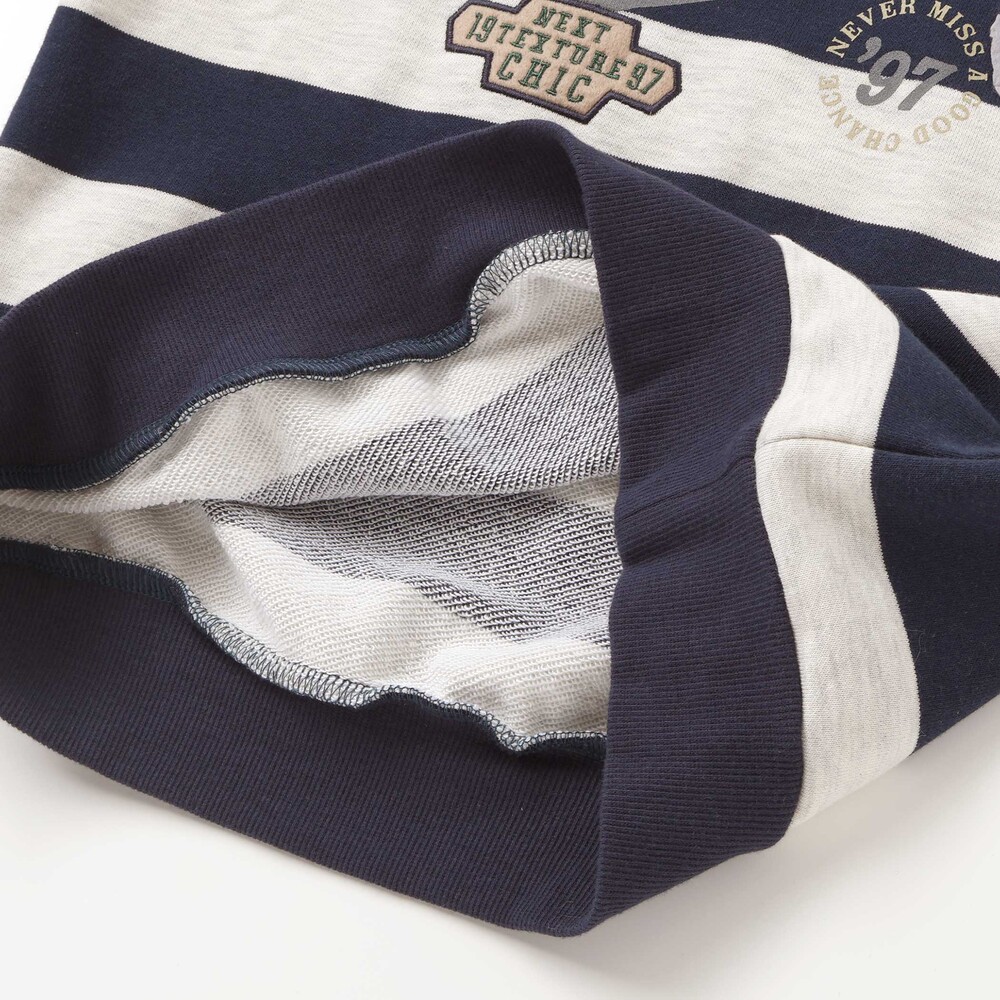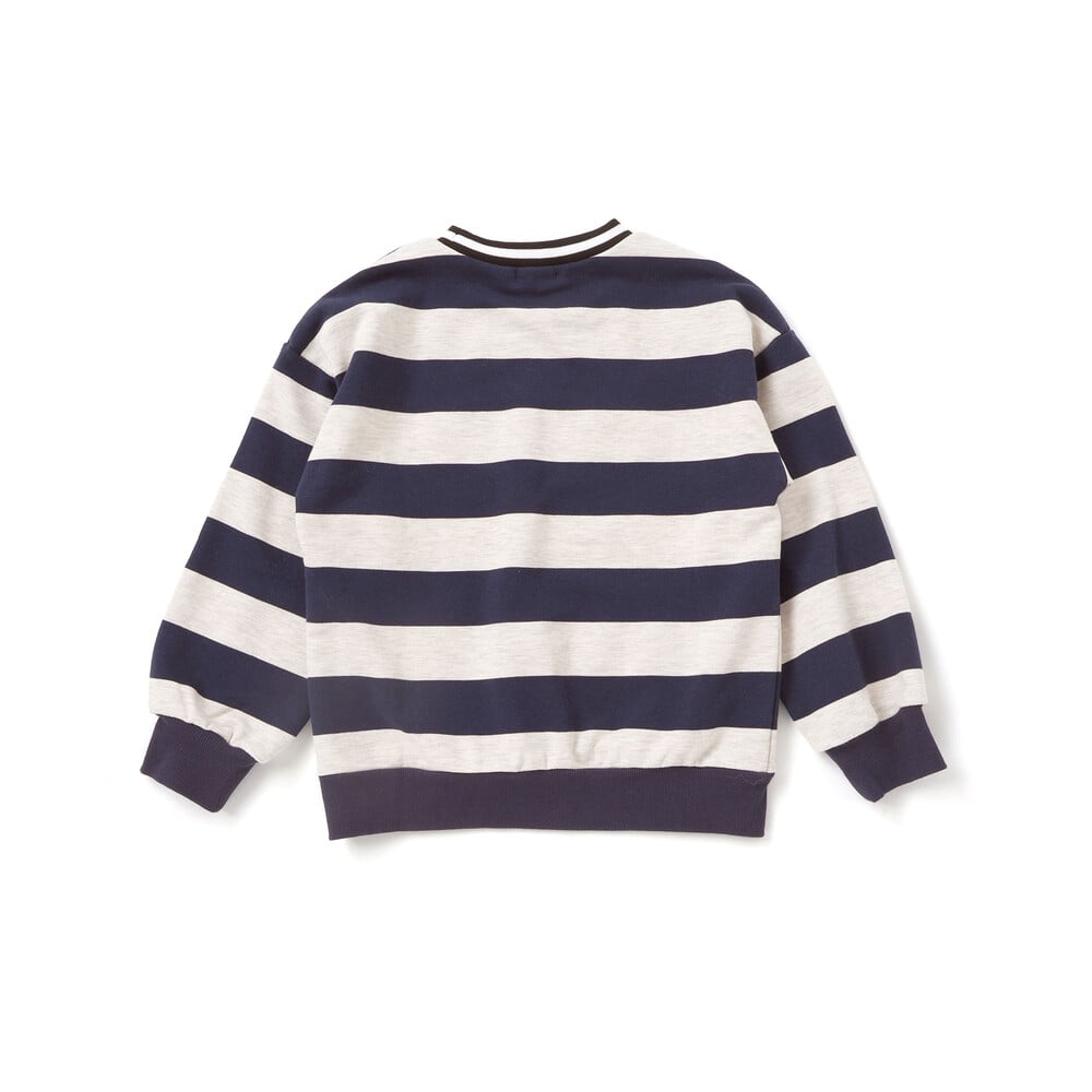 カジュアルな印象のボーダー柄裏毛素材を使用した、着心地の良い男の子用トレーナー。