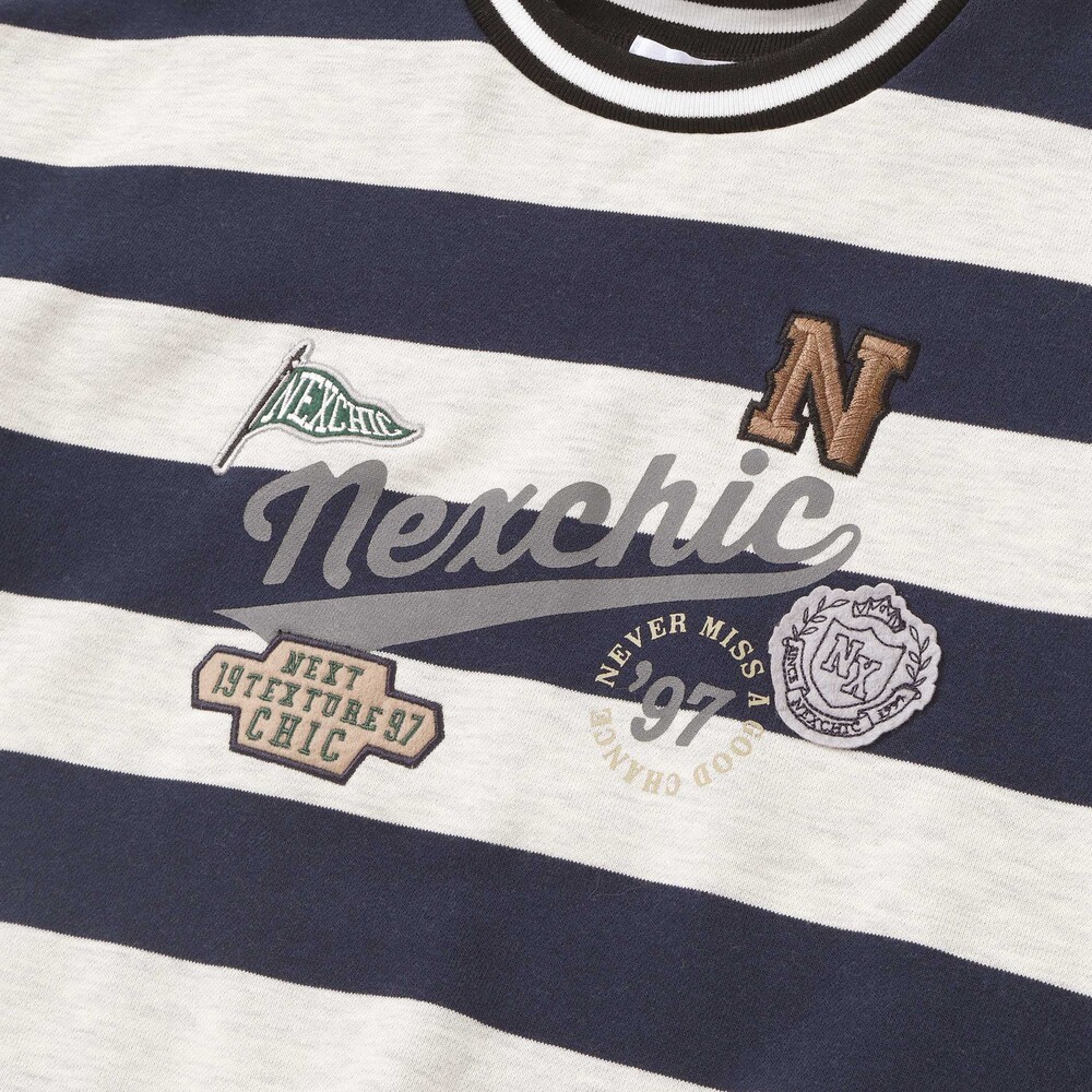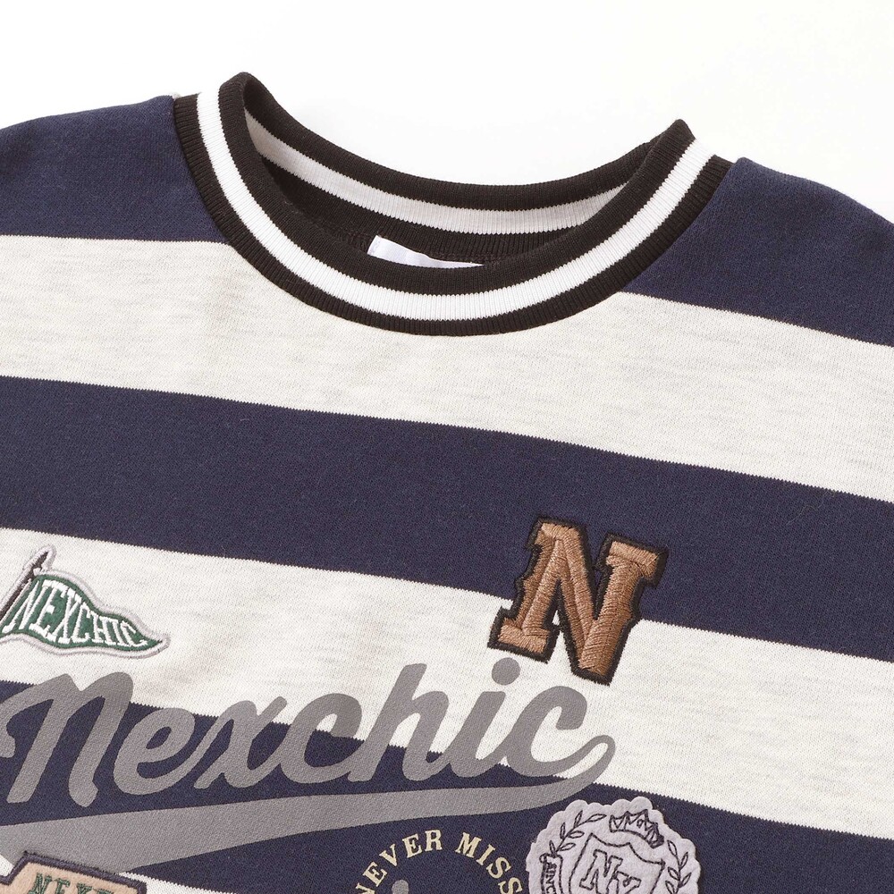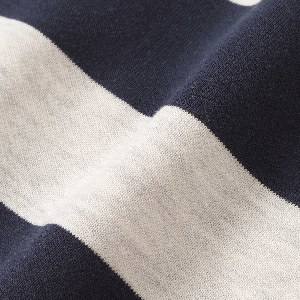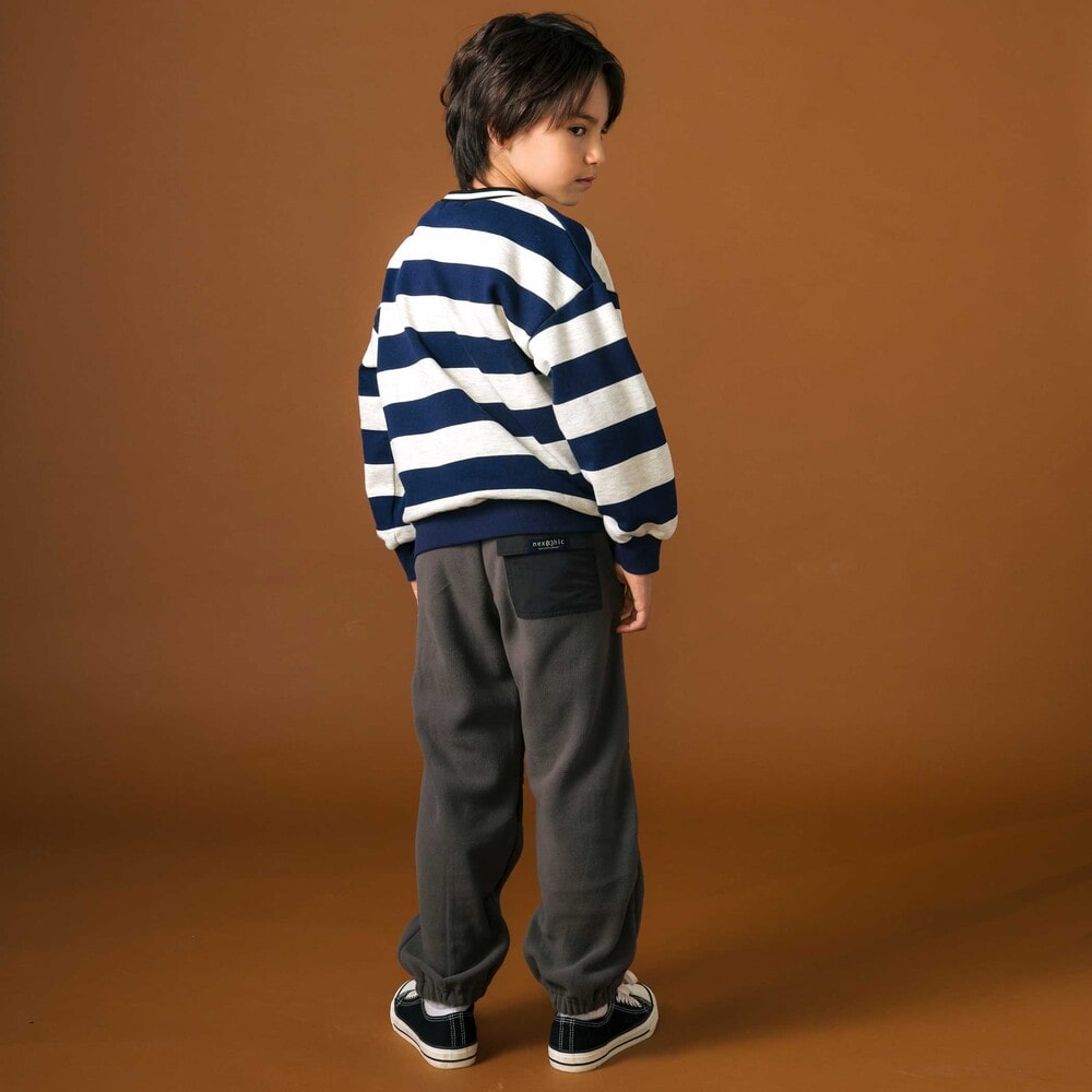 カジュアルな印象のボーダー柄裏毛素材を使用した、着心地の良い男の子用トレーナー。