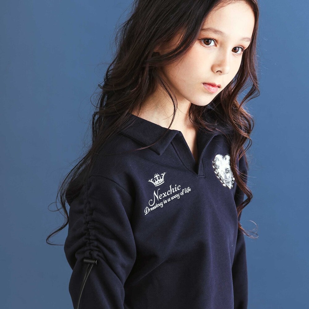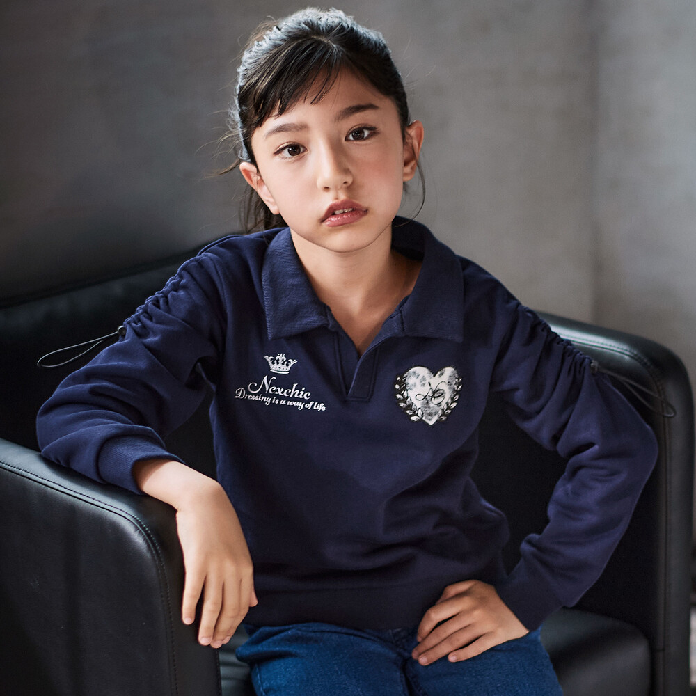 ディテールで差がつく女の子用あたたか裏起毛ラガーシャツ。