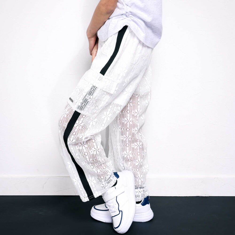 透け感のある花柄レースにラインが入った女の子用パンツ。
