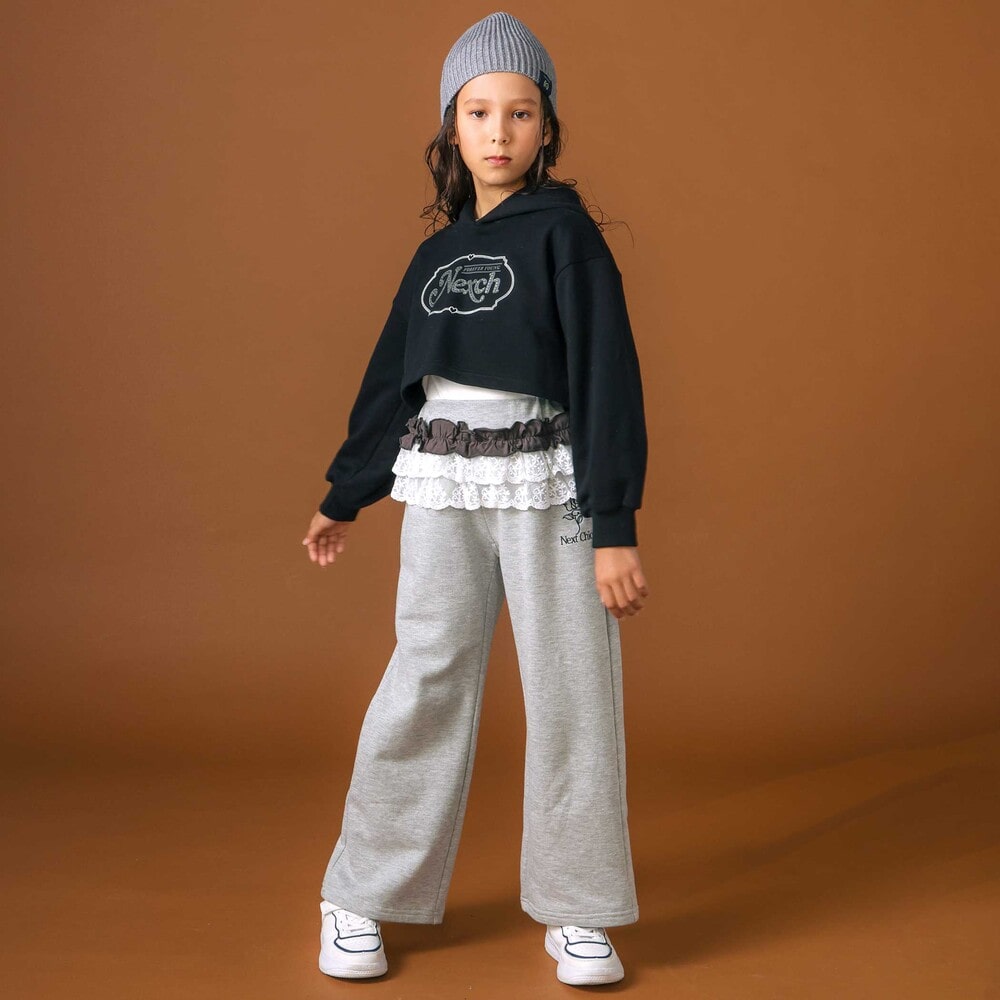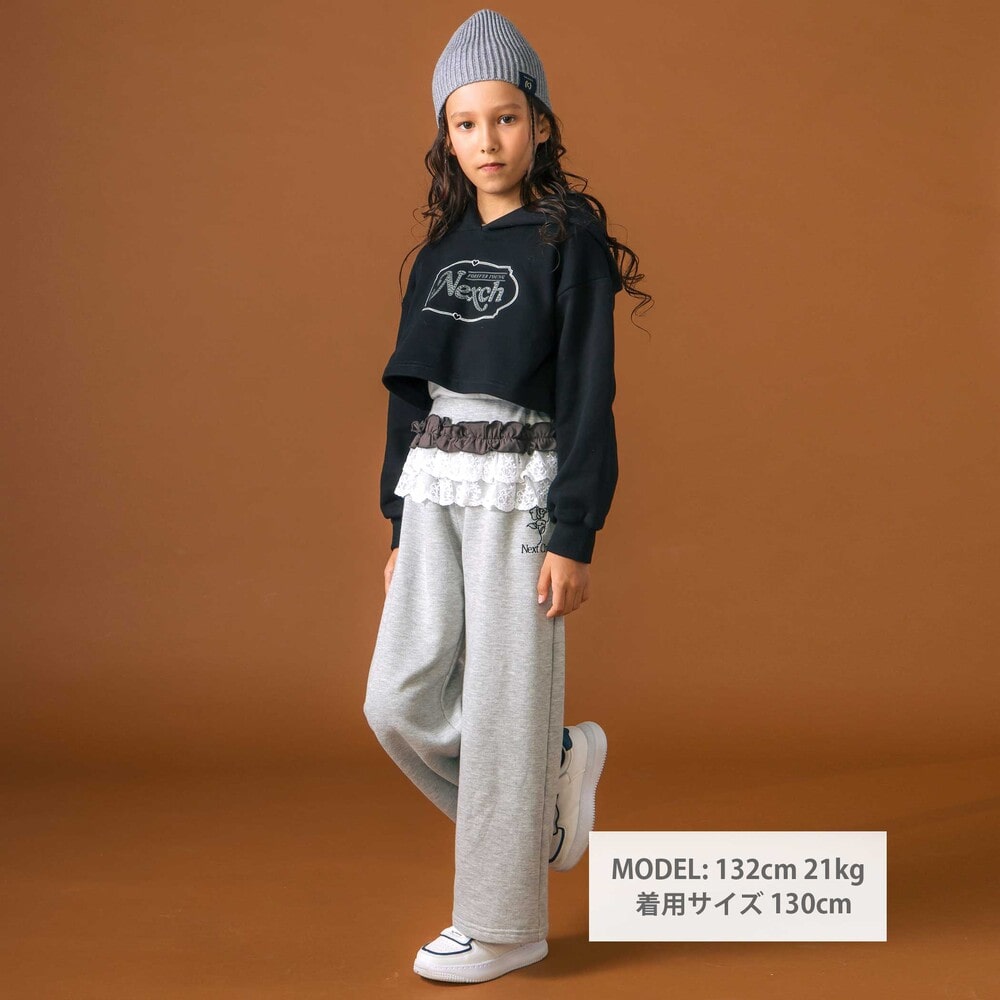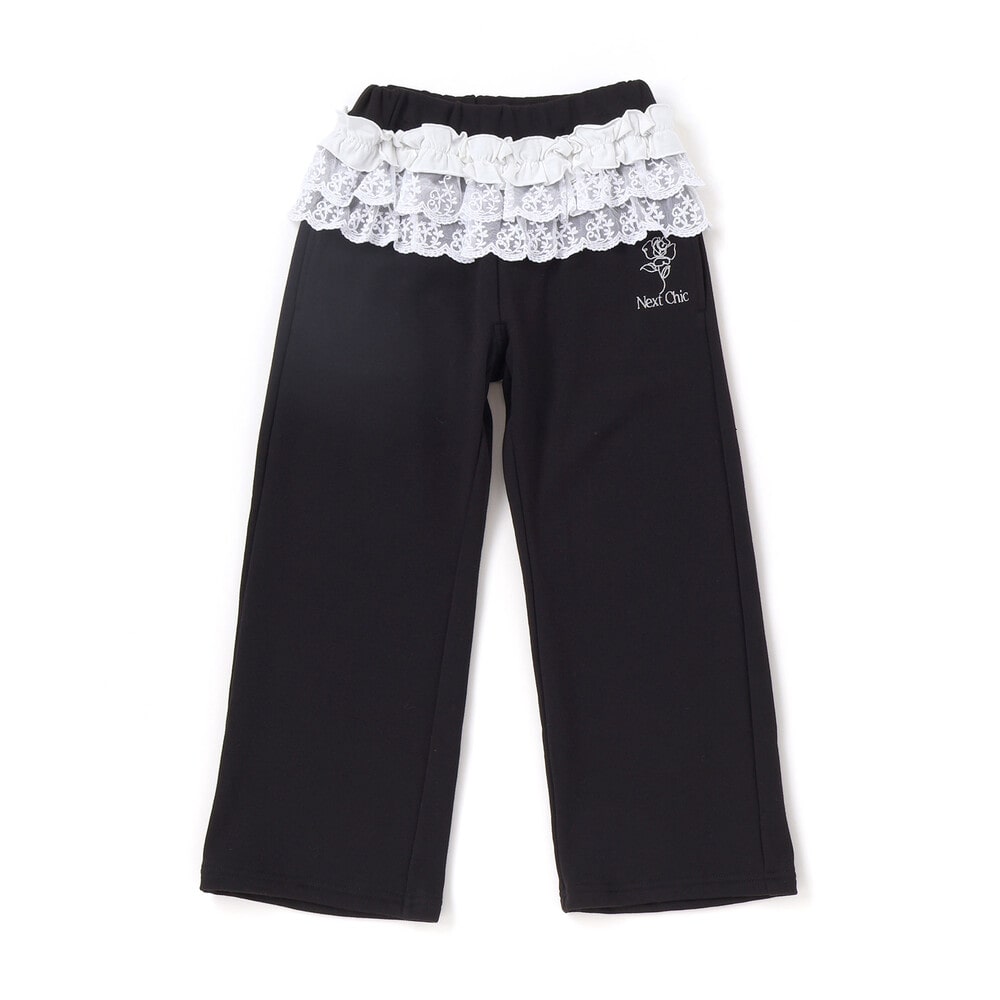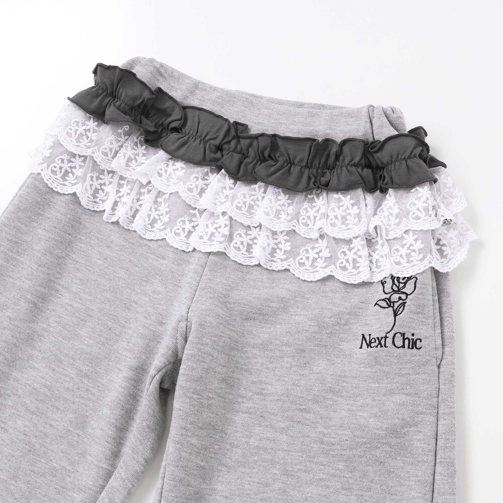 ウエストにたっぷりギャザーを寄せた2段フリルがポイントの女の子用パンツ。
